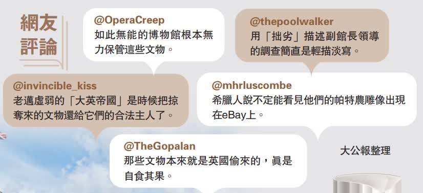 希臘總理米佐塔基斯上月26日訪問英國,原本計劃與英國首相蘇納克會晤時要求英國將帕特農神廟雕塑歸還給希臘。但蘇納克在兩人會面前數小時突然取消會晤,引發希臘方面不滿。蘇納克的一位發言人還表示,並沒有歸還這些雕塑的計劃。