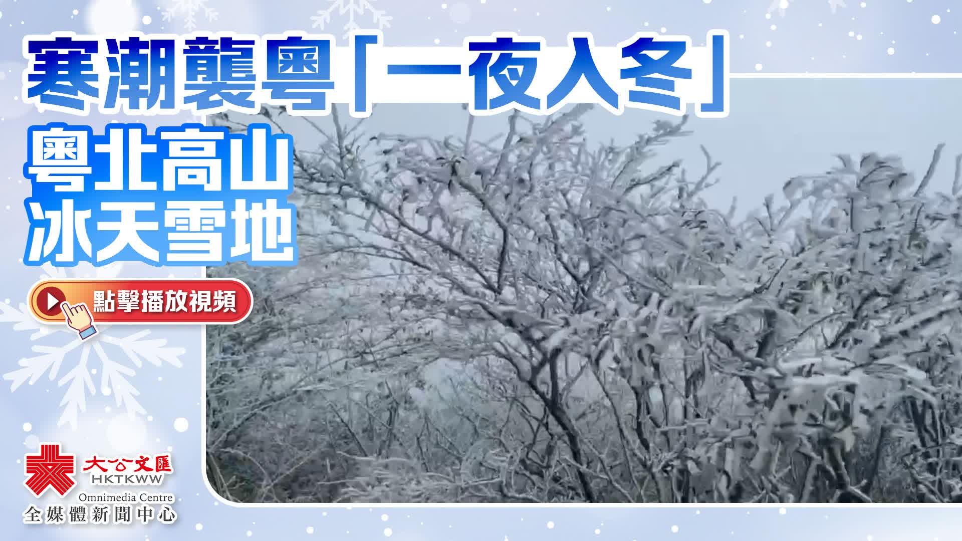 (大公文匯網 記者 方俊明)寒潮自15日起影響廣東,16日凌晨到達廣州,目前已到達南部沿海,給廣東全省帶來了明顯大風降溫和降雨天氣,讓廣東「一夜入冬」。記者16日從廣東省林業局獲悉,16日粵北高山已經「冰天雪地」,其中海拔1902米廣東第一峰,呈現一派晶瑩剔透的北國風光。