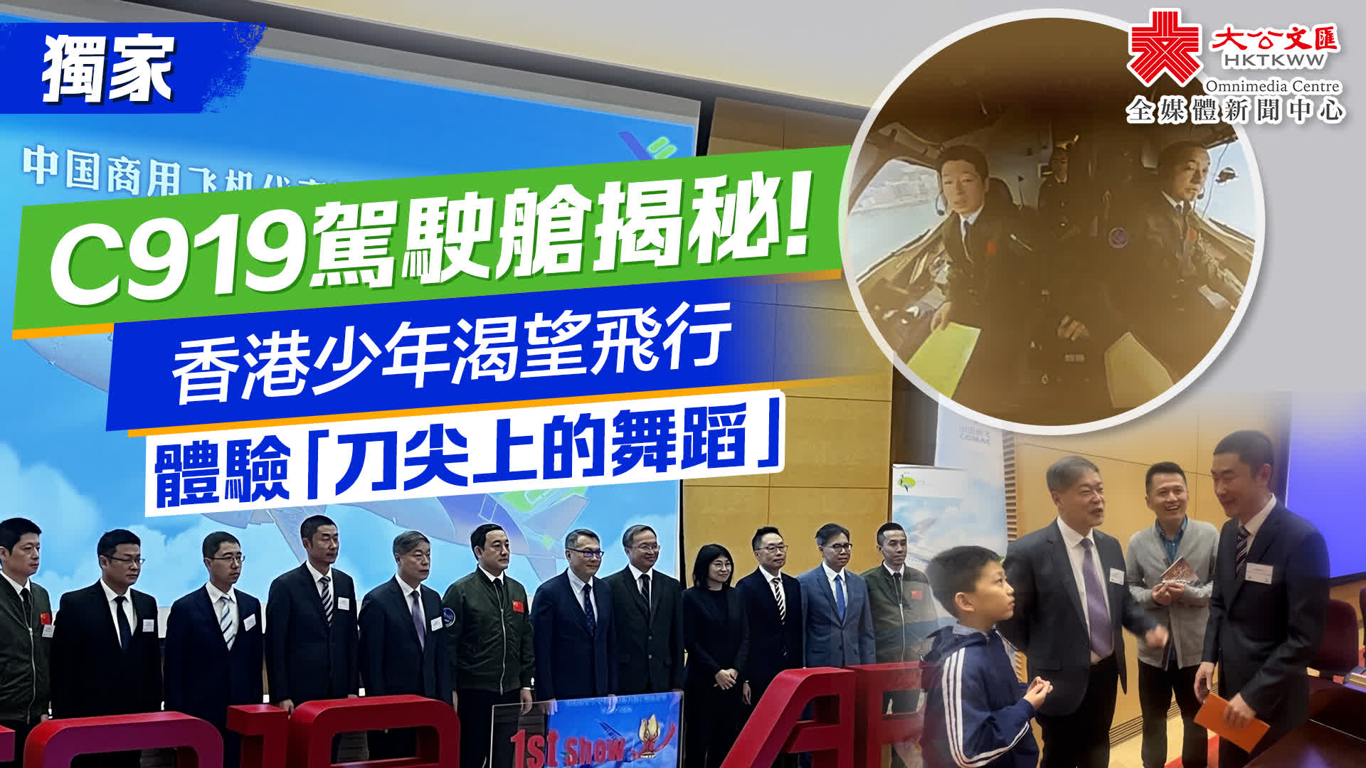(大公文匯全媒體記者 周傾芫)今日(16日),首架國產大飛機C919第一次飛越維港上空,掀起港人追機熱潮。香港民航處特意邀請開發兩款客機(C919、ARJ21)的中國商用飛機有限責任公司的代表,今日下午於民航處總部與青少年會面交流,分享製造兩架客機的歷程,並特邀點新聞記者獨家採訪。
