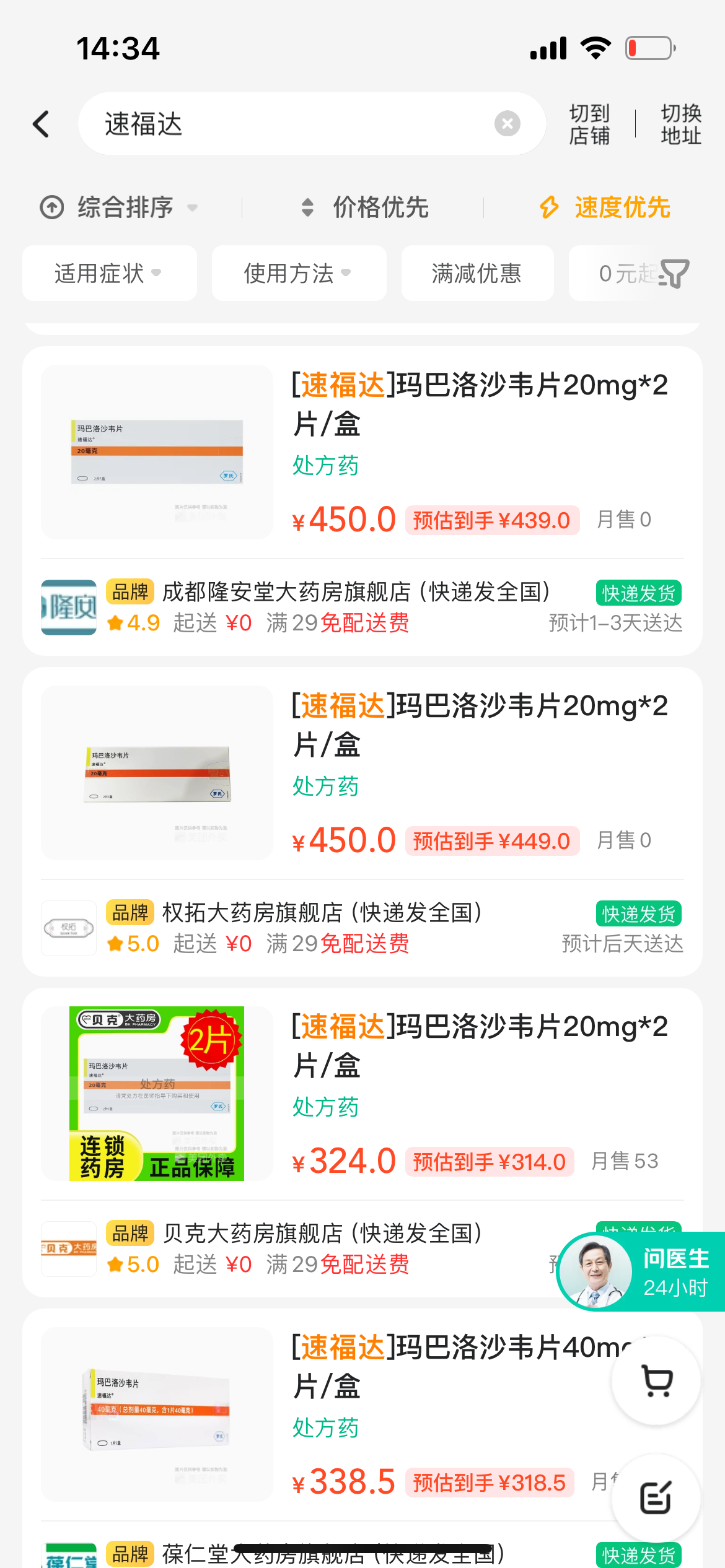 對此,個別商家客服解釋為此前優惠活動結束。記者隨機諮詢重慶渝北區多家藥店,每盒(20mg*2片/盒)「速福達」報價多在350元左右,且缺貨嚴重。