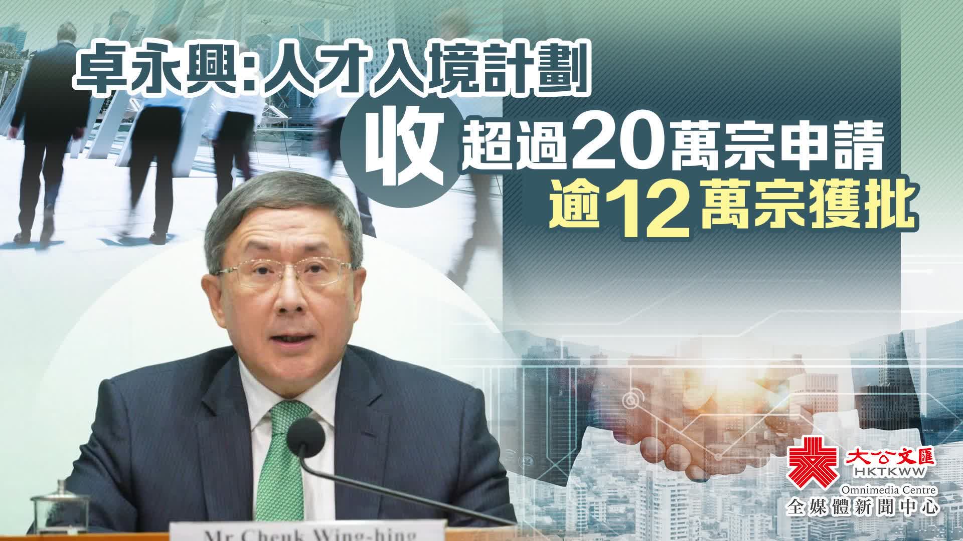 卓永興續指,人才赴港人數亦十分理想,在今年首11個月內,已有逾8萬名獲批簽證的人才抵港,遠超每年至少引入3.5萬名人才的目標,足見香港機遇處處,對全球人才具有相當的吸引力。同時,人才亦攜同家眷來港落戶,今年累計有6.8萬名受養人抵港。這些外來的優秀人才及其家人對香港人口結構及勞動力會帶來很正面的影響。