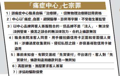 編者按:以低廉「試做價」吸引新客體驗「療程」的「痛症中心」近月如雨後春筍般在各區冒起,當中除了涉及違規營銷手法,還有新興的「先買後付」支付方式、涉嫌呃保險、物理治療,以及醫療行業亂象。香港文匯報今日起推出系列報道,將分4輯踢爆相關陷阱,以及探討解決之道。