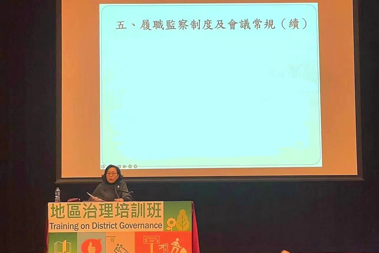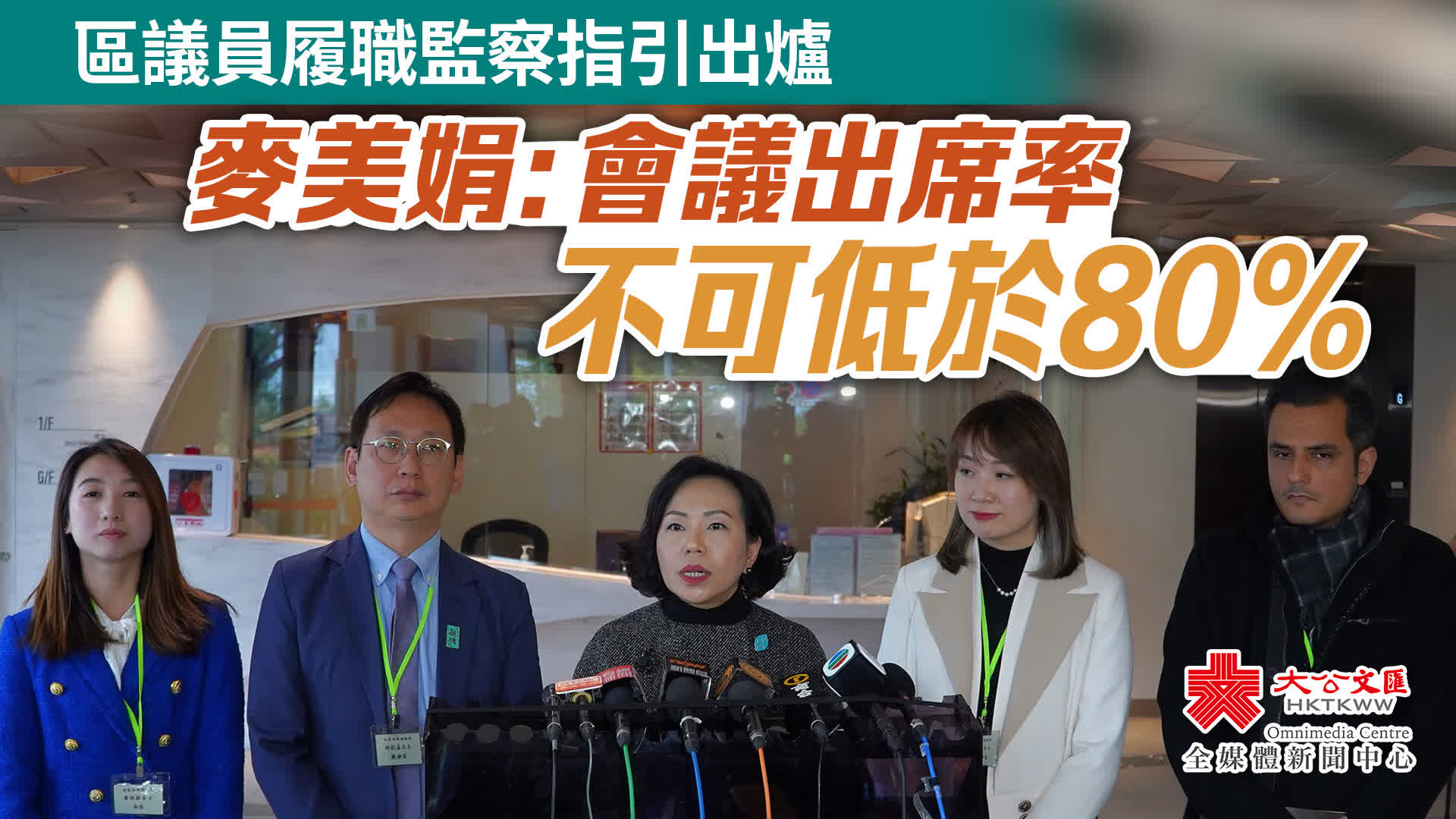 麥美娟透露,培訓亦提及關於區議員履職監察機制指引,主要是根據《區議會條例》,民青局稍後會發布,包括負面行為清單,包括不可擾亂會議、按機制申報利益等,同時對區議員履職盡責訂立目標,包括會議出席率不可低於80%、開設辦事處、每年提交工作報告予區議會主席、上任後建立恒常與市民溝通機制,加強與市民的緊密接觸,協助他們解決問題和困難及反映意見。