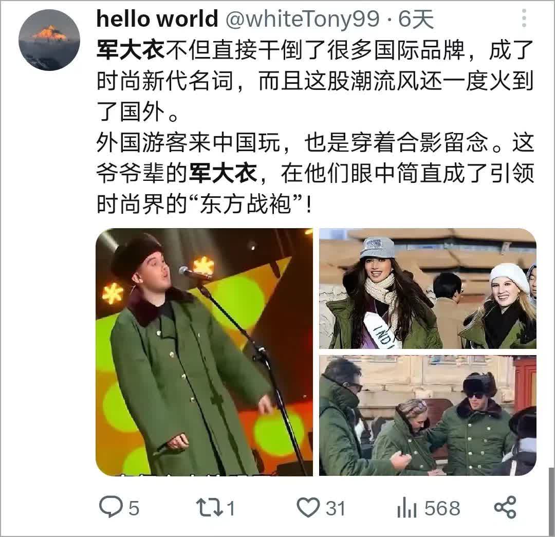 簡直成了真·軍大衣國際推廣大使。