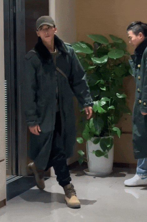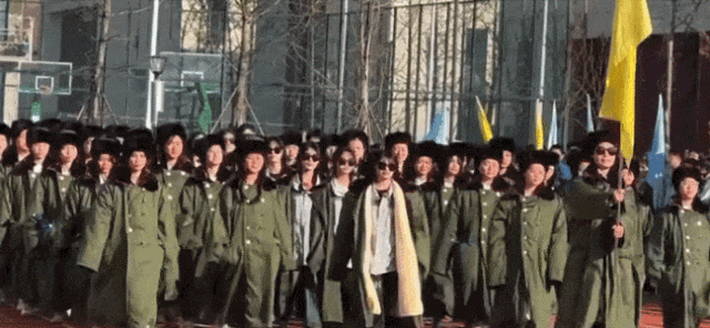 穿軍大衣的姿勢同樣火出圈。