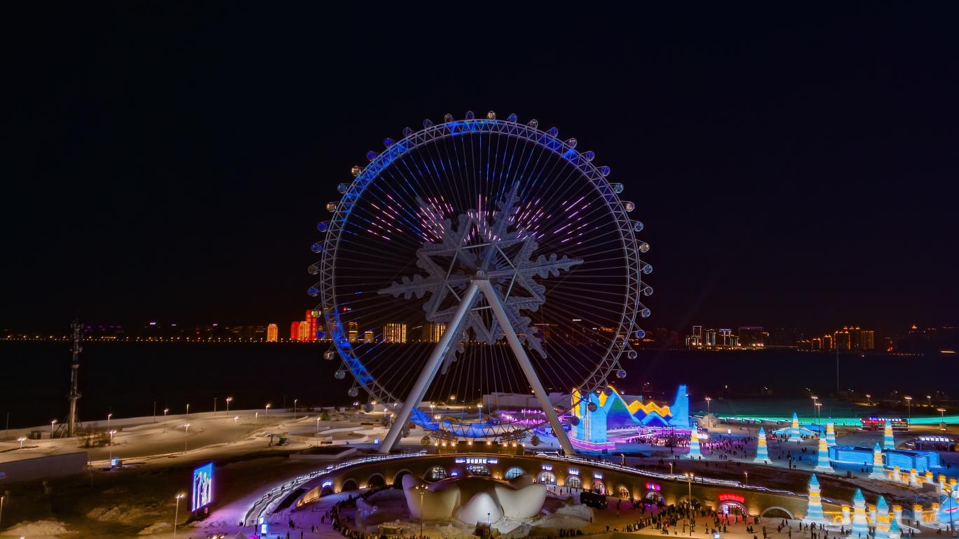 嗨玩現場區域中,備受遊客歡迎的超級冰滑梯全面升級,滑道由8條增至14條,最長滑道達521米,滿足遊客的遊玩熱情,減少排隊時間。雪花摩天輪同步迎客,遊客可以乘坐雪花摩天輪鳥瞰天地線,從高空俯瞰整個冰雪大世界美景,飽覽松花江兩岸風光。這將成為今冬哈爾濱冰雪大世界兩大愛情主題打卡網紅項目。