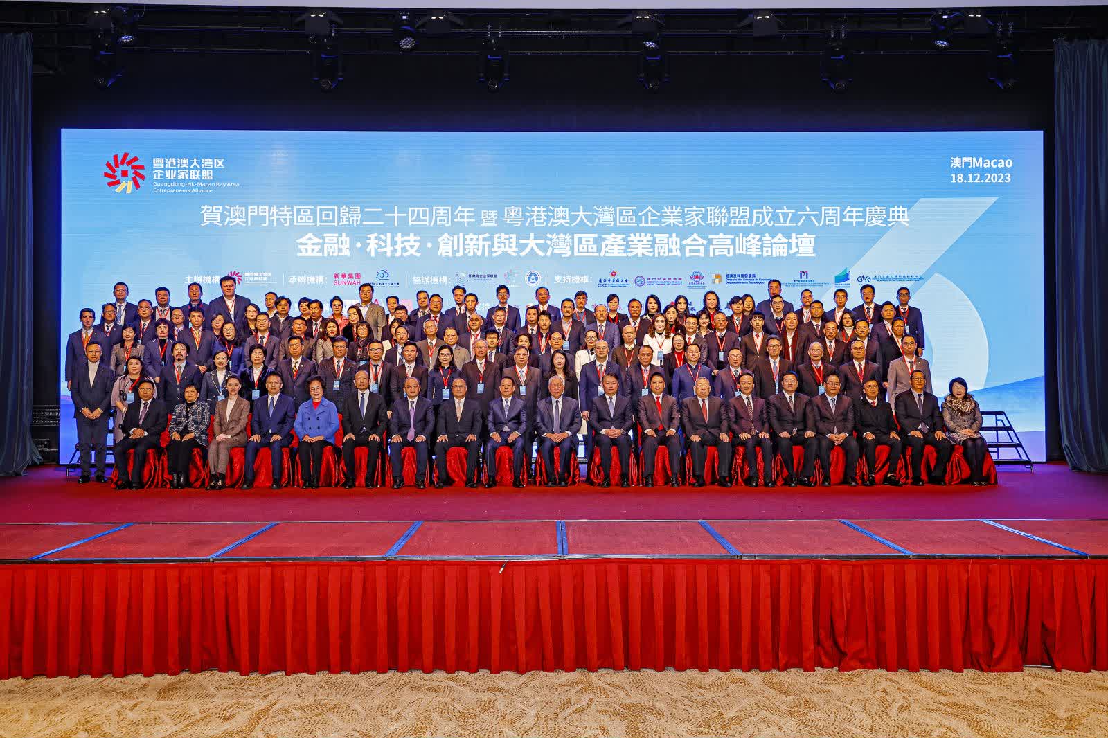 這是聯盟成立六年來第一次在澳門舉辦紀念活動,適逢澳門特區回歸24周年之際,活動得到澳門、香港以及廣東省、市政府領導的高度重視,全國政協副主席何厚鏵親臨主禮,澳門特區行政長官賀一誠、香港特區行政長官李家超、廣東省副省長張新均發表視頻致辭,中央人民政府駐澳門特別行政區聯絡辦公室副主任黃柳權、澳門特別行政區經濟財政司司長李偉農、珠海市市長黃志豪、中山市市長肖展欣亦親臨現場,與三百位來自澳門、香港、大灣區和內地各界企業家代表,共襄其盛。