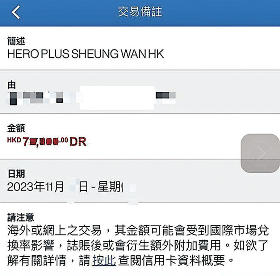 (香港文匯報 記者 文禮願)香港文匯報昨日直擊報道,踢爆以低廉「試做價」吸引新客體驗「療程」的「痛症中心」相關陷阱後,同日有市民李先生向香港文匯報爆料,指他被「痛症中心」焗買逾7萬元「療程」,逃出虎口後查看碌卡簽賬紀錄,乍然發現交易方竟是一間名為Hero Plus的公司,而非該「痛症中心」。根據官網,Hero Plus主力經營「先買後付」平台,金管局介紹指這是另類貸款,一般由平台代消費者一筆過墊支貨款予商戶,消費者之後分期攤還予平台。李先生表示,「痛症中心」未經其同意作出有關安排,擔心自己成為Hero Plus的債仔,對利息、細則等卻一無所知,「好似俾人『賣豬仔』,最驚『痛症中心』執笠仍要繼續供死會,故已向警方舉報。」