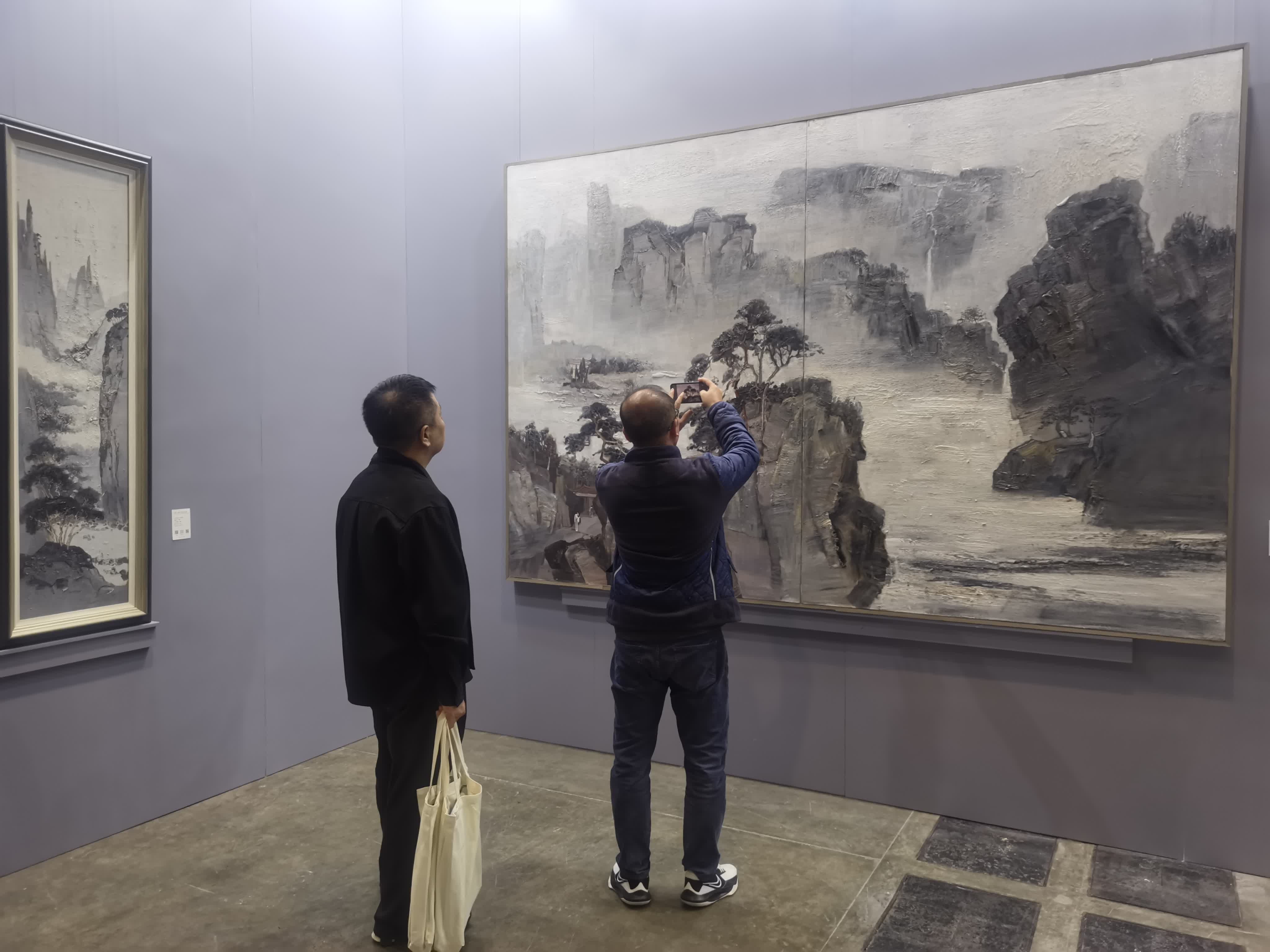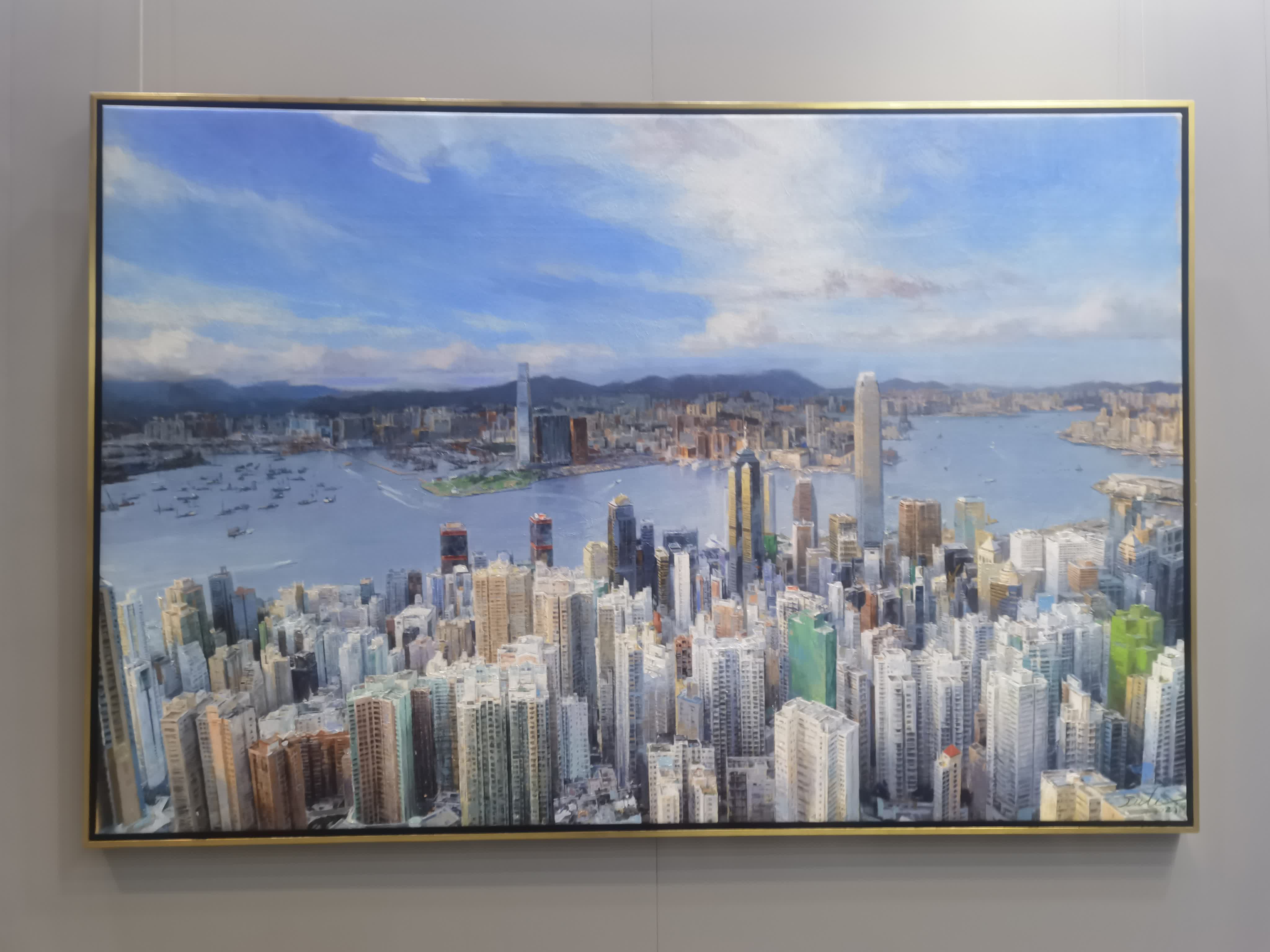 現場還展出一系列水墨作品,水墨作品《綠水青山就是金山銀山》色彩具表現力,線條果敢;《蒼龍圖》氣象博大,充滿中國文人畫的大氣飄逸、大道至簡。此外,為了今次的展出,徐里還特意創作了描繪香港題材畫作,所描繪的香港都市風光,勾勒細膩,彰顯功力。