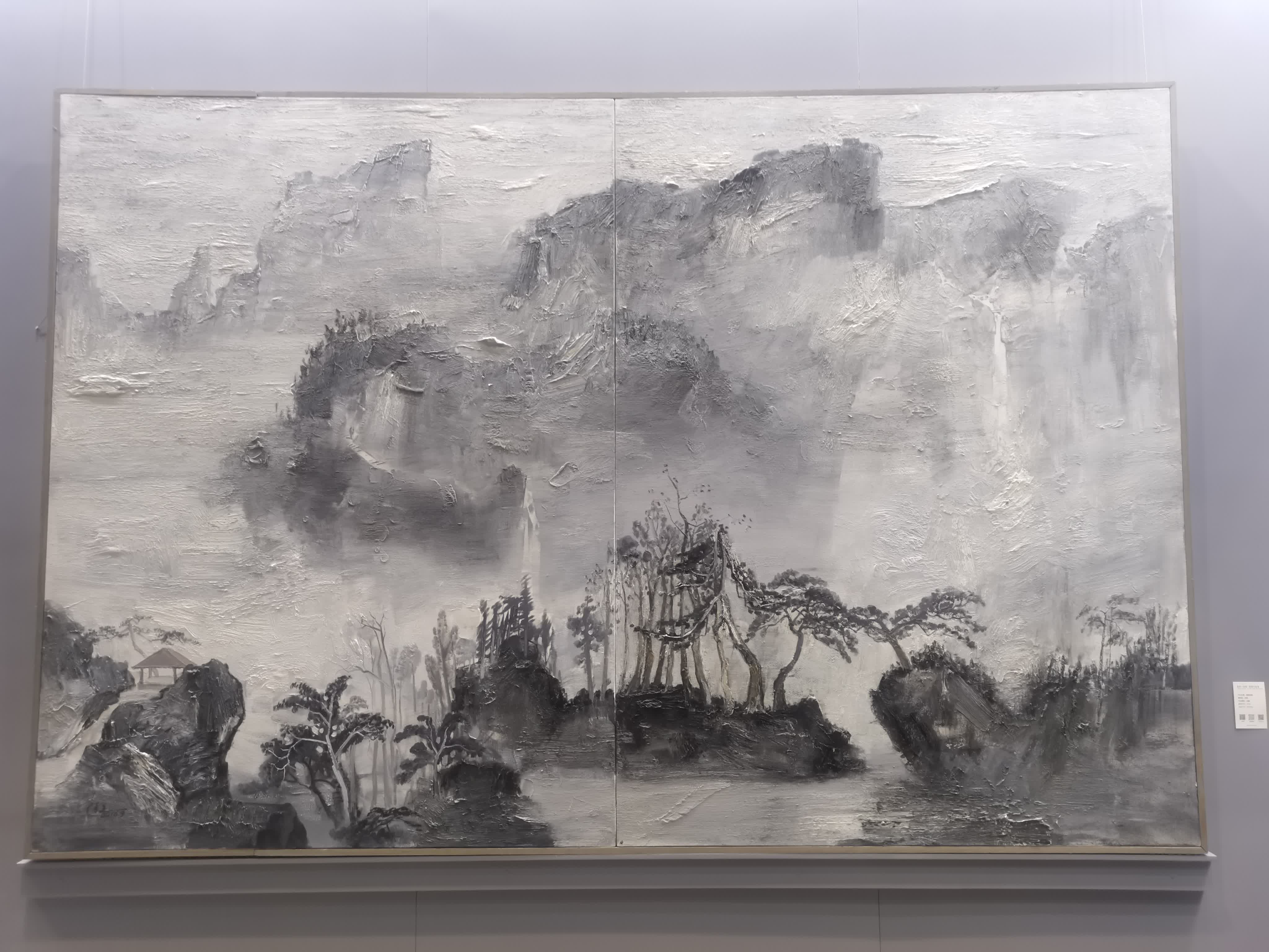 展廳現場多展示徐里大尺幅油畫和水墨畫作品,展出作品涵蓋《大壑清音》《江山如有待我欲做來人》《黃河清水灣》等勾勒祖國壯美山川的作品,以及《內蒙風光》《蜻蜓花上舞》《晨》等洋溢中國寫意精神的力作佳品,還有《雲山無盡》《鄉山暮靄》《大山深處雲起時》等巨幅水墨畫。
