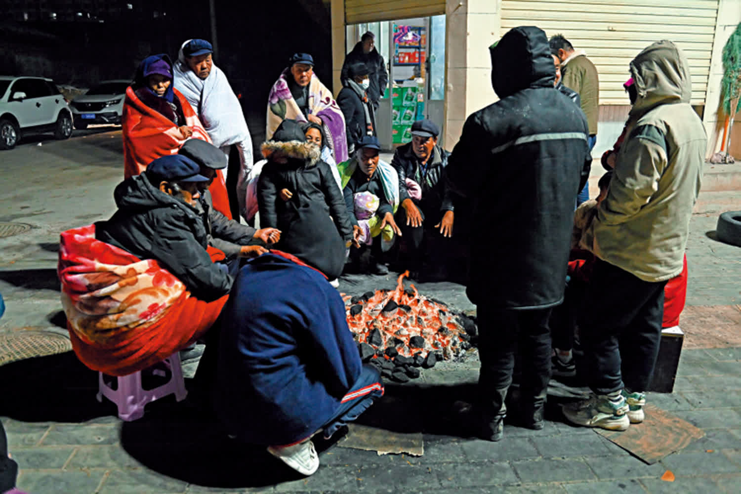 在震中附近的吹麻灘鎮街道,有居民在路邊生火取暖,「害怕有更大的餘震,不敢回家。」專家稱,震區入夜最低氣溫將達-16℃,被困於倒塌建築物中的群眾或出現低溫症,必須加快搜救。