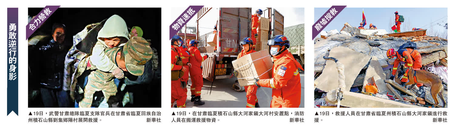 大公報綜合記者郭濤、新華社、人民日報、觀察者網、南方日報、光明日报報道:18日23時59分,甘肅臨夏州積石山縣發生6.2級地震。一方有難,八方馳援。地震發生後,解放軍和武警部隊19日凌晨起出動多支救援力量抵達地震災區,抓住救災「黃金72小時」。西部戰區陸軍第76集團軍某旅約300名官兵連夜出動,19日凌晨4時許到達受災嚴重的積石山地震災區。西部戰區空軍一架運-20和翼龍-2H應急救災型無人機緊急出動飛赴災區支援救災。