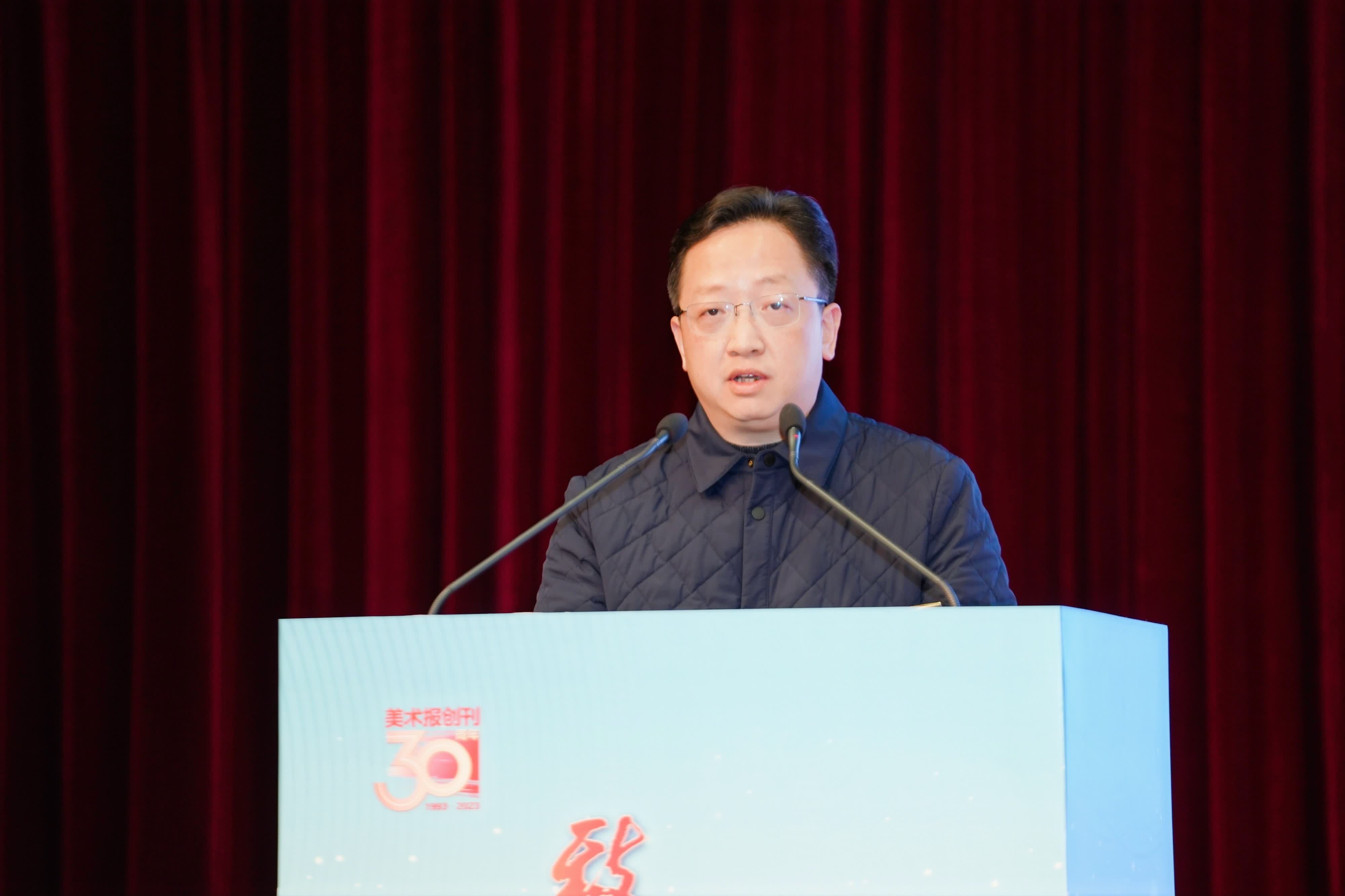 浙江省委宣傳部副部長、省政府新聞辦主任虞漢胤對美術報30年來,為浙江文化大省、美術大省建設、美術人才隊伍的培養建設、文化傳播等方面所做出的成績給予了充分肯定。同時,也進一步提出,要求《美術報》深入貫徹習近平文化思想,進一步發揮專業力量,不斷書寫時代新篇章;堅持不懈弘揚優秀傳統文化,在傳遞人文精神體現責任擔當;要持續推動媒體深度融合,在服務大眾美育中,拓寬發展路徑,走好大美育大美術之路。