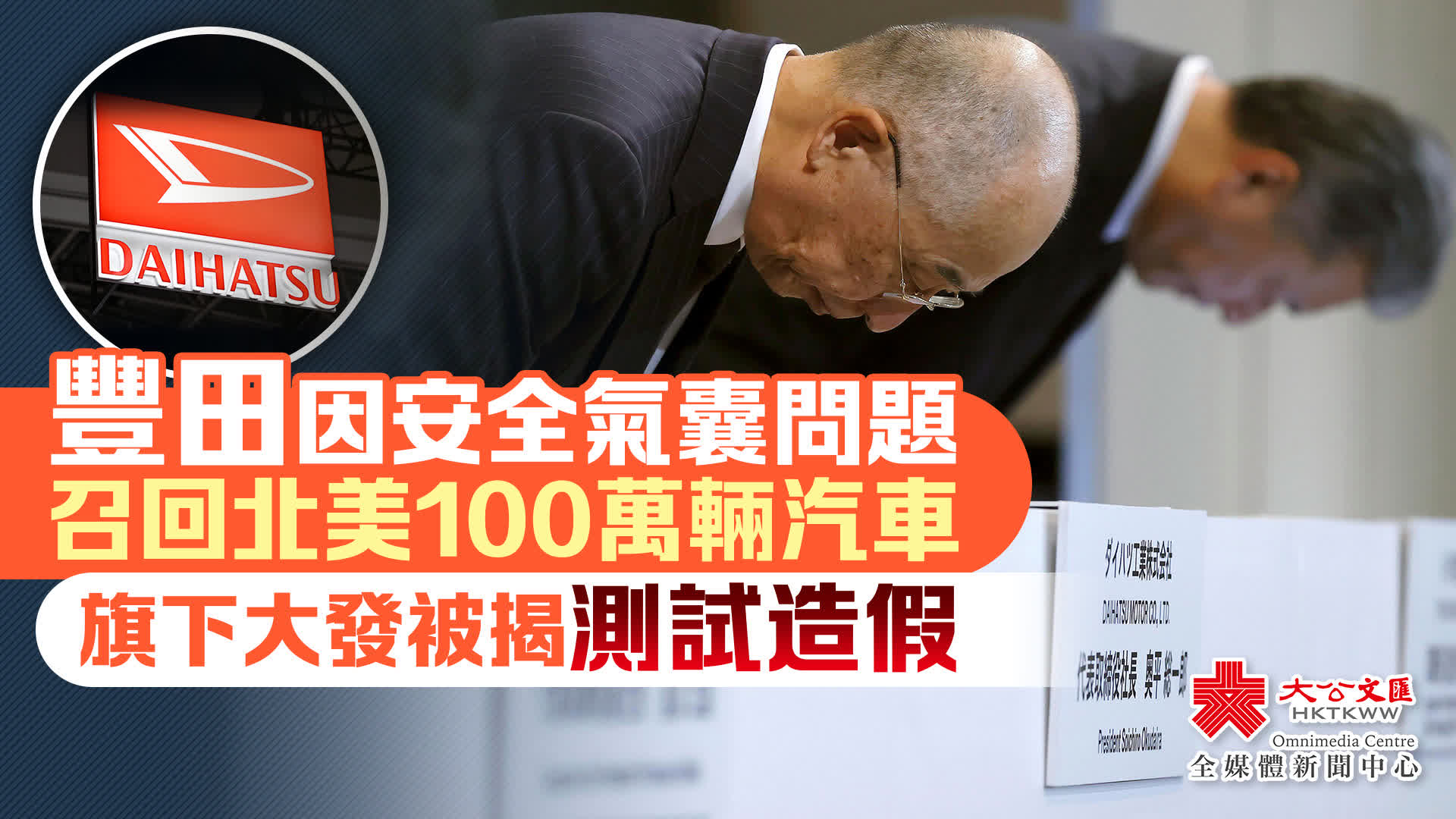 據央視新聞報道,豐田汽車公司當地時間12月20日宣布,因安全氣囊存在潛在質量問題,該公司在加拿大和美國銷售的約100萬輛汽車需要召回。