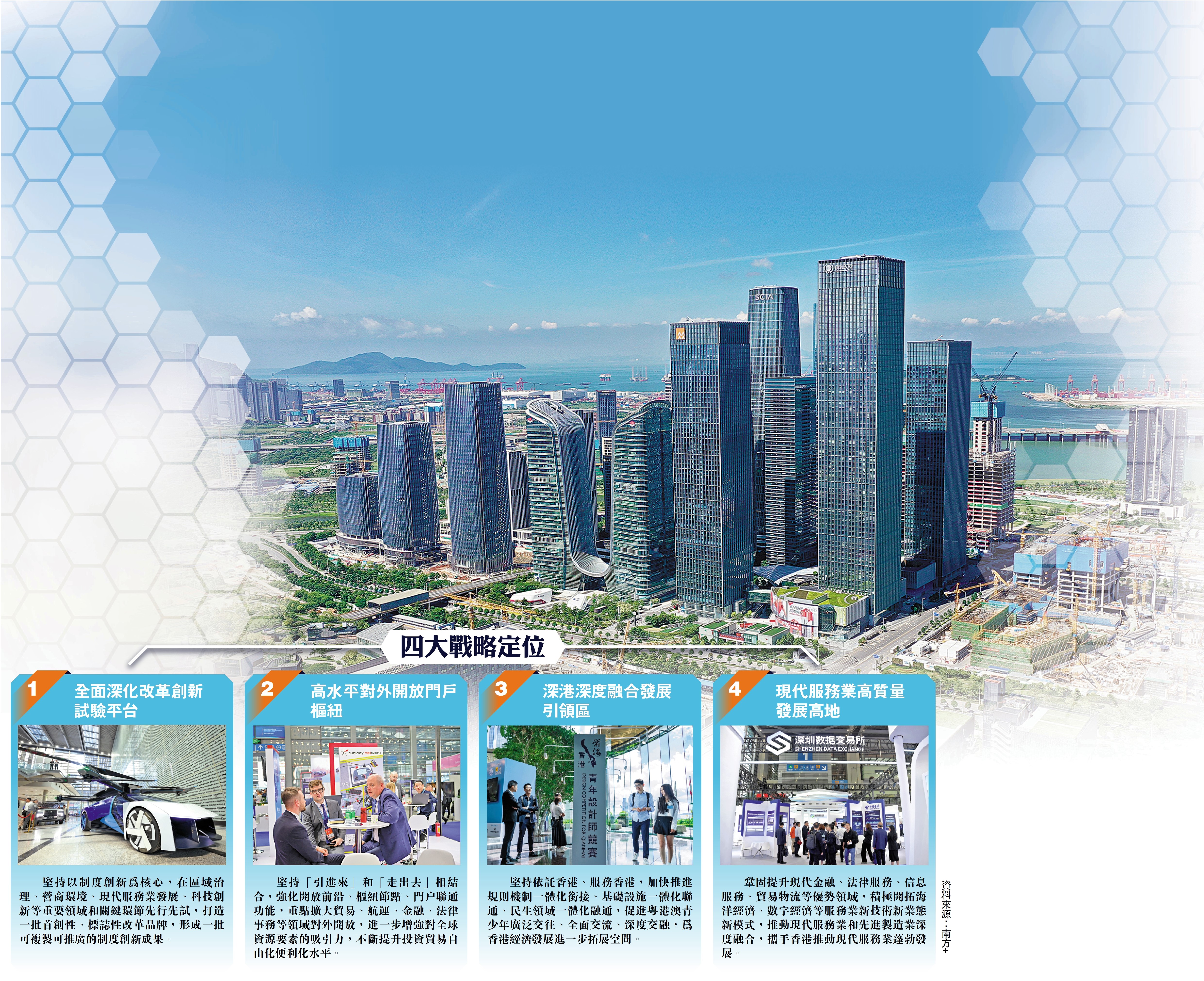 《前海總規》推動現代服務業與先進製造業深度融合,攜手香港推動現代服務業蓬勃發展;深化金融業開放創新,高水平建設前海深港國際金融城,創新前海金融監管機制,與香港建立跨境金融監管聯席協同機制,為兩地金融機構跨境業務提供更大便利。