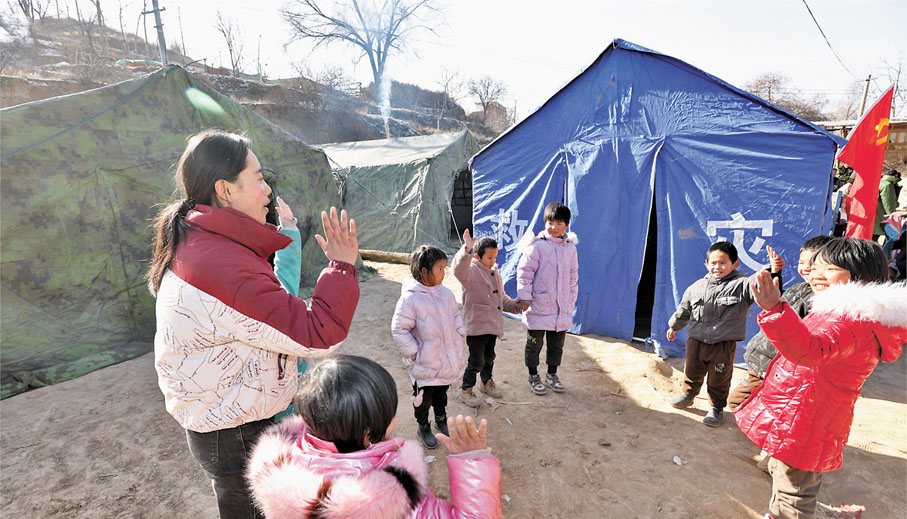 (香港文匯報 記者 郭濤 甘肅報道)在甘肅省臨夏州積石山縣柳溝鄉的救災帳篷裏,應急燈下,七八名小朋友圍坐在火爐旁。他們正在溫習新學的課文,而張世晶老師則耐心地給他們講解着。「這個字是什麼呀?」一個小朋友好奇地問道。「馬。」張世晶回答道。「給馬組個詞,木馬、小馬、馬兒對不對。」她繼續引導着孩子們思考。帳篷裏的讀書聲在寒冷的冬天顯得格外動聽,彷彿讓人回到了地震前在學校的日子。