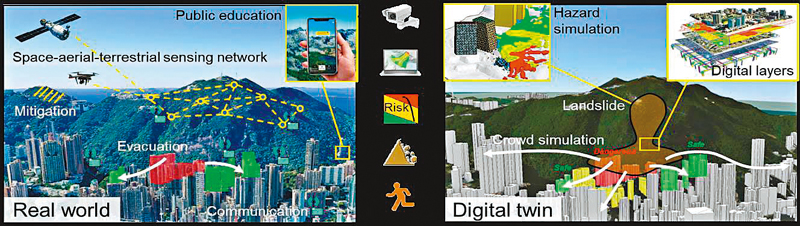 (香港文匯報 記者 王鼎煌)人口稠密,山多平地少,是香港主要城市特徵,山泥傾瀉(又稱滑坡)一直為社會帶來重大威脅。單是今年「9·7暴雨」,全港就錄得近190處山泥傾瀉災害,影響多個地區交通與居民生活。為處理山泥傾瀉風險管控的難題,香港科技大學學者張利民團隊今年獲資研局近7,400萬元撥款,開發首個達城市規模(city-scale)、可覆蓋香港全境斜坡的數字孿生(Digital Twin)系統。他近日接受香港文匯報記者專訪時分享,該項目將結合物理模型模擬驅動、智慧感知、通信集成網絡和數字孿生引擎等新技術,不單開創了城市級的實時山泥傾瀉風險評估,更能高效模擬一旦災害發生相關交通及市民逃生等社會反應,支援協調應急決策,協助香港實現「智慧減災」。