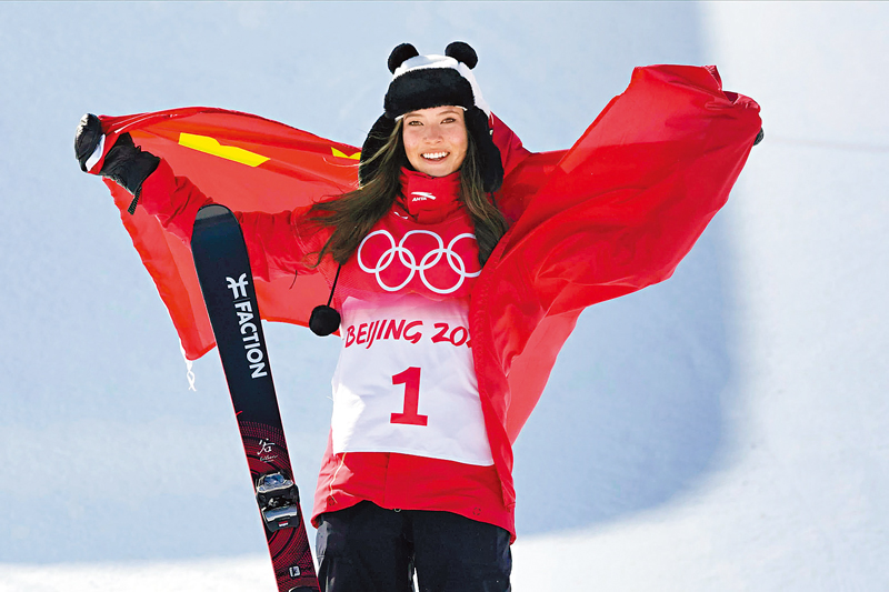 谷愛凌被譽為滑雪界的「天才少女」,她2003年出生於美國舊金山,母親是中國人。從2019年開始,谷愛凌代表中國隊參賽。北京冬奧會期間,她一舉摘得自由式滑雪女子大跳台和自由式滑雪女子U型場地技巧2枚金牌,外加1枚自由式滑雪坡面障礙技巧銀牌。