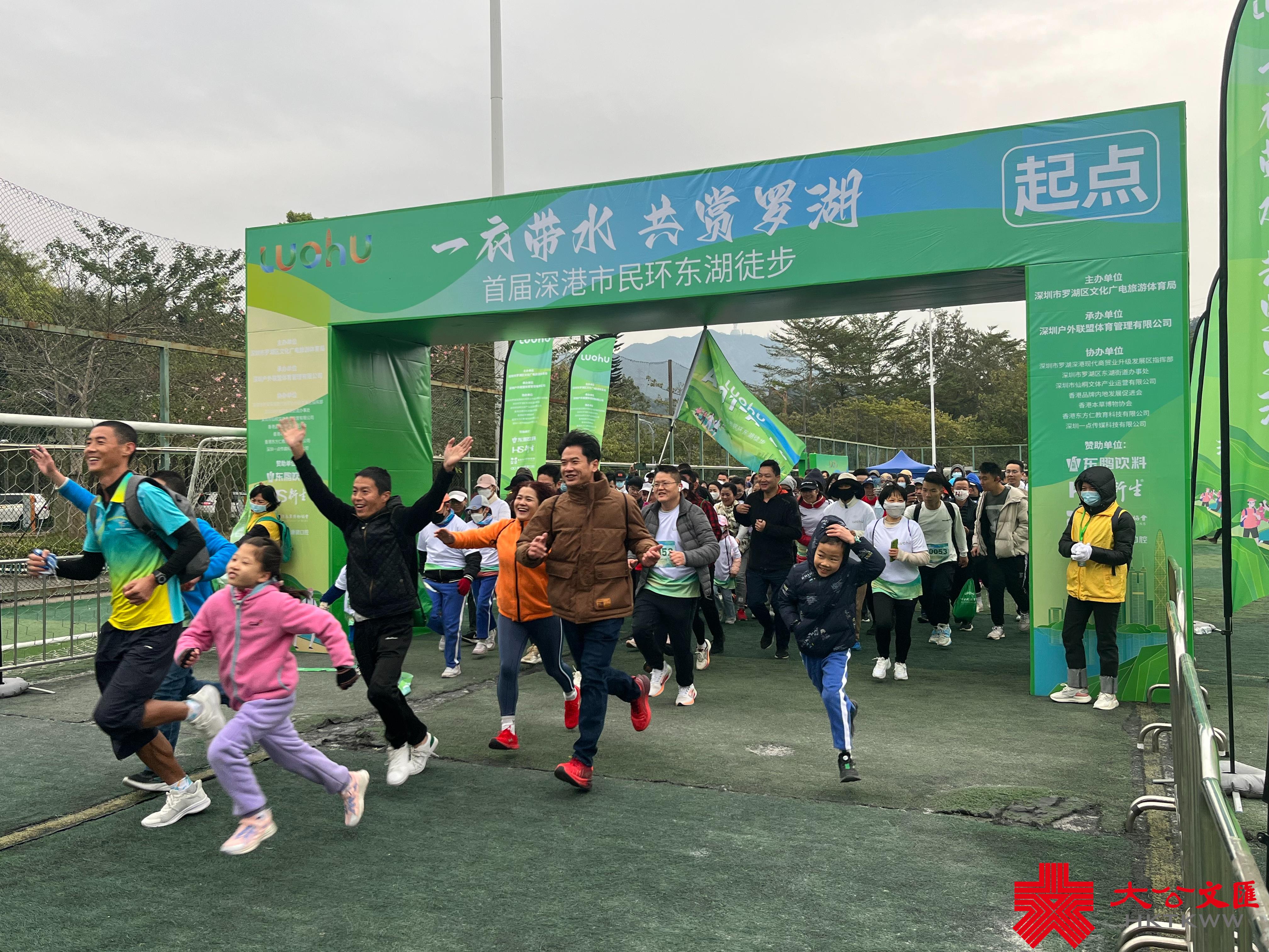(大公文匯網記者 李望賢 深圳報道)「一衣帶水 共賞羅湖」首屆深港市民環東湖徒步活動23日上午在羅湖區東湖公園舉行。活動特邀嘉賓「中國登山第一人」張梁,帶領800名深港兩地市民徒步向前。8公里樹蔭綠道蜿蜒向前,山光水色簇簇擁擁,青山綠水之間,兩地市民將滿腔熱血凝聚在腳下,每一步都綻放出青春的光芒。