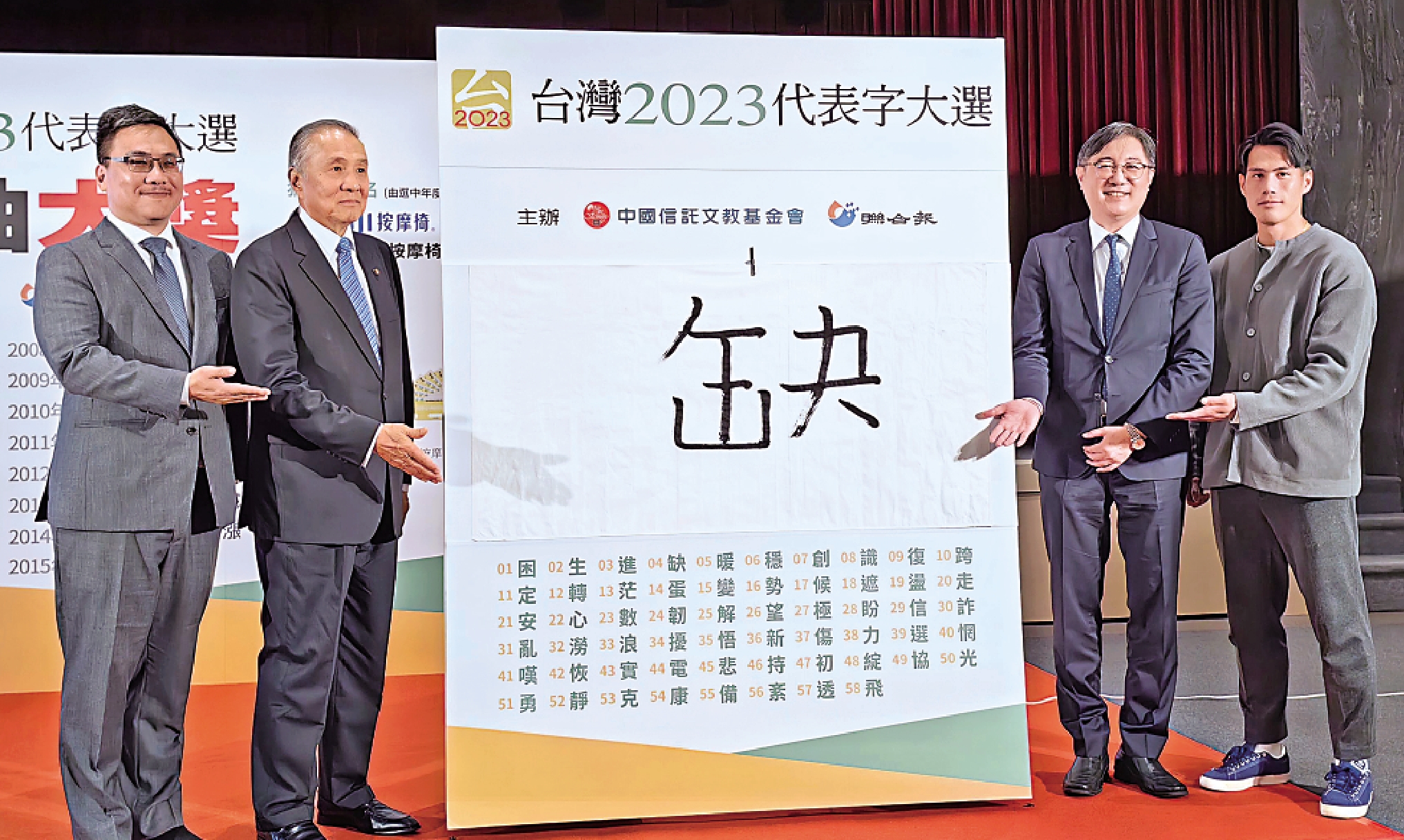 「台灣2023代表字大選」由台灣「中國信託文教基金會」與台灣《聯合報》合辦,邀請各界名人專家等推薦58個代表字。其結果於日前公布,「缺」拿到第一高票,獲選為今年年度代表字,緊隨其後的是「蛋」字。前兩名加起來剛好是「缺蛋」,被認為準確地呼應今年從台灣民眾日常生活一路延燒到政治的蛋荒議題。
