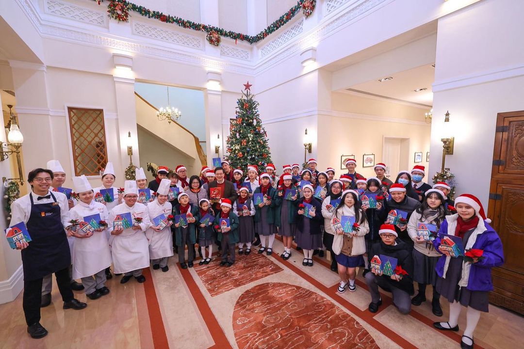 大公文匯全媒體報道,今日(12月25日)是聖誕節。特首李家超今早在社交媒體上表示,聖誕是一個充滿愛和分享愛的節日,並祝市民聖誕快樂。李家超指,早前和太太邀請了心光盲人院暨學校的青少年、「共創明Teen」和正在職業訓練局轄下學院——酒店及旅遊學院、中華廚藝學院及國際廚藝學院就讀的學生和畢業生,一起到禮賓府分享喜悅和溫暖,推動建立關愛共融的聖誕氣氛。