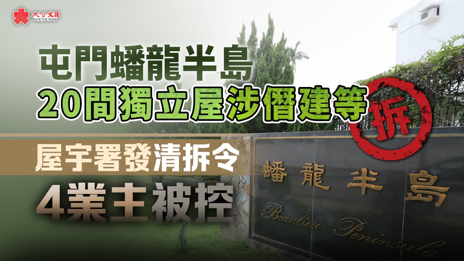 關鍵詞:蟠龍半島僭建屋宇署獨立屋