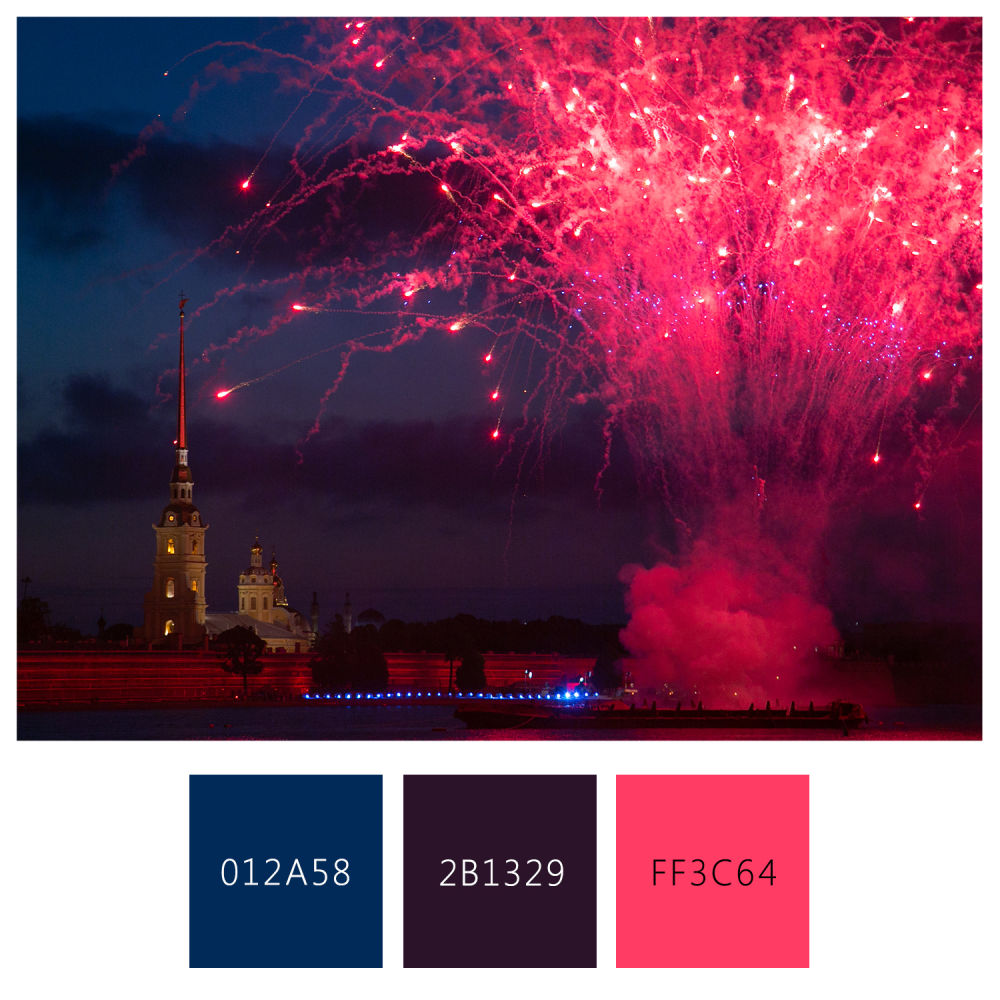 ↓這是2023年6月25日凌晨在俄羅斯聖彼得堡涅瓦河畔拍攝的「紅帆節」煙花表演。