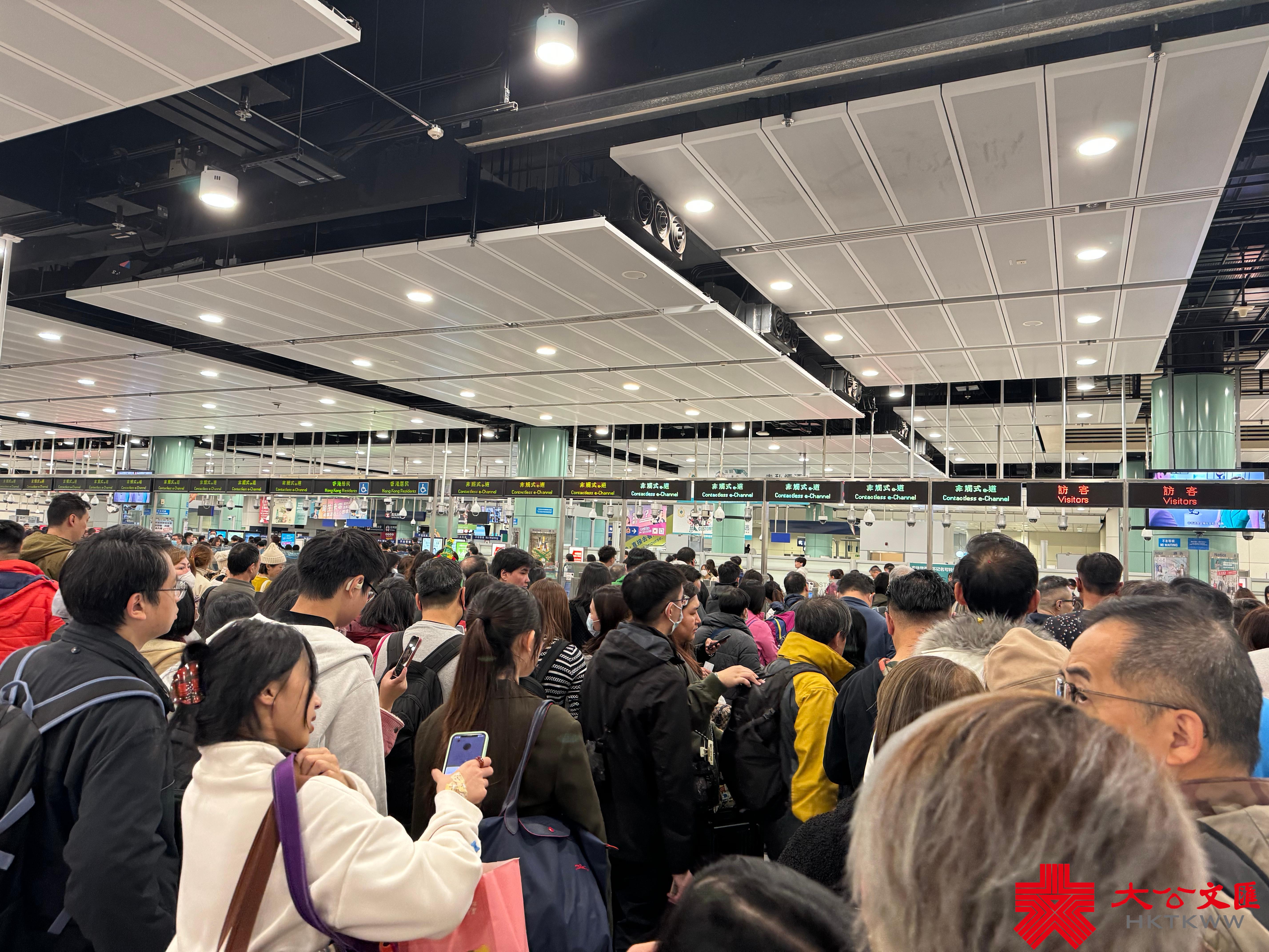 入境處早前預計,今次聖誕假期約有903萬人次經各口岸出入境,預期入境高峰期為明日(12月26日),入境人次約62.6萬。