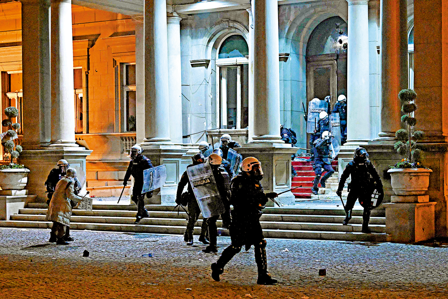 大公報綜合法新社、今日俄羅斯、彭博社報道:當地時間24日,塞爾維亞首都貝爾格萊德發生騷亂,數千名親西方的反對派聯盟支持者拒絕承認此前公布的國民議會選舉結果,其中逾千人試圖闖入市政廳大樓,並與警方發生暴力衝突,至少38人被捕。塞爾維亞總統武契奇稱,此次事件是一場未遂的「顏色革命」,並感謝「外國情報部門」提前向塞方發出預警。據報道,武契奇提到的「外國」為俄羅斯。俄當局25日稱,西方國家破壞塞爾維亞穩定的企圖「顯而易見」。