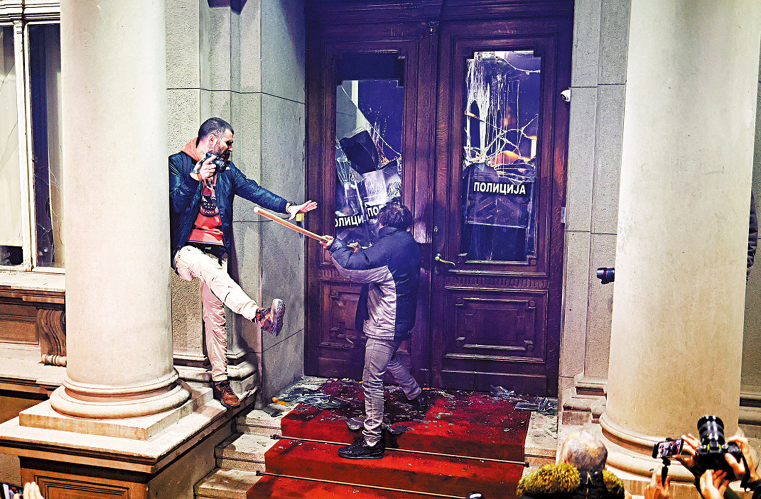 當地時間24日晚,數千人走上貝爾格萊德街頭,質疑17日舉行的議會選舉及地方選舉結果。大批示威者聚集在市政廳附近,抗議活動很快演變為暴力衝突,逾千人試圖闖入市政廳大樓。塞爾維亞內務部警察局局長伊夫科維奇公布調查結果稱,示威者向警察投擲火把、棍棒和石塊,暴力事件持續了3個小時。警方拘留了38人,隨着調查的深入,這一數字或將增加。