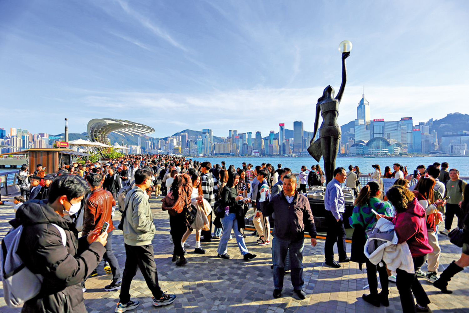 在香港的著名景點星光大道,昨日人潮如鯽,濃厚的聖誕氛圍和繽紛的節慶裝置,吸引不少旅客打卡。大公報記者訪問了部分來自內地的旅客在港的遊玩體驗,雖然有人認為香港存在部分歧視普通話遊客的情況,但整體而言仍有讚好的地方。
