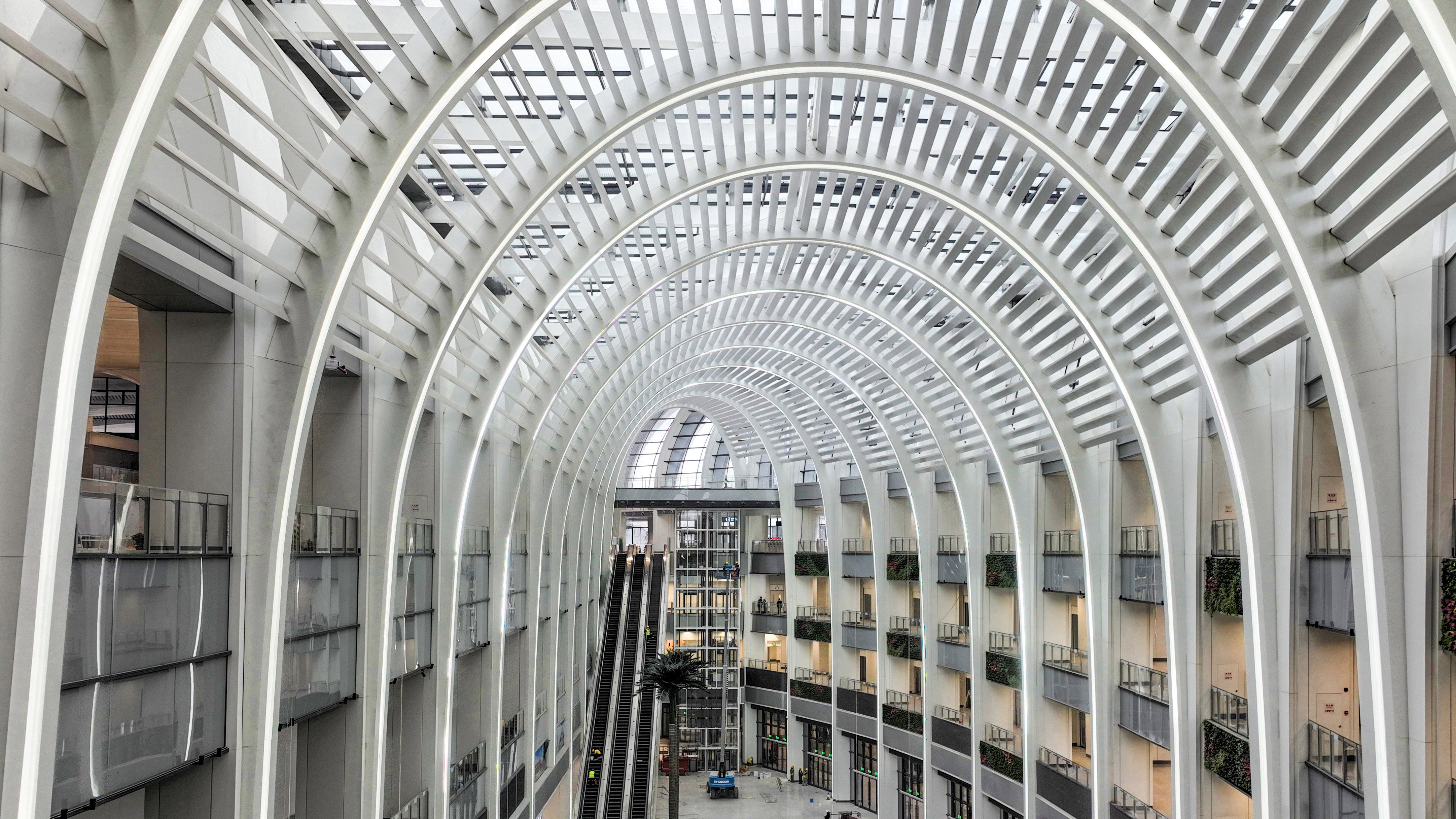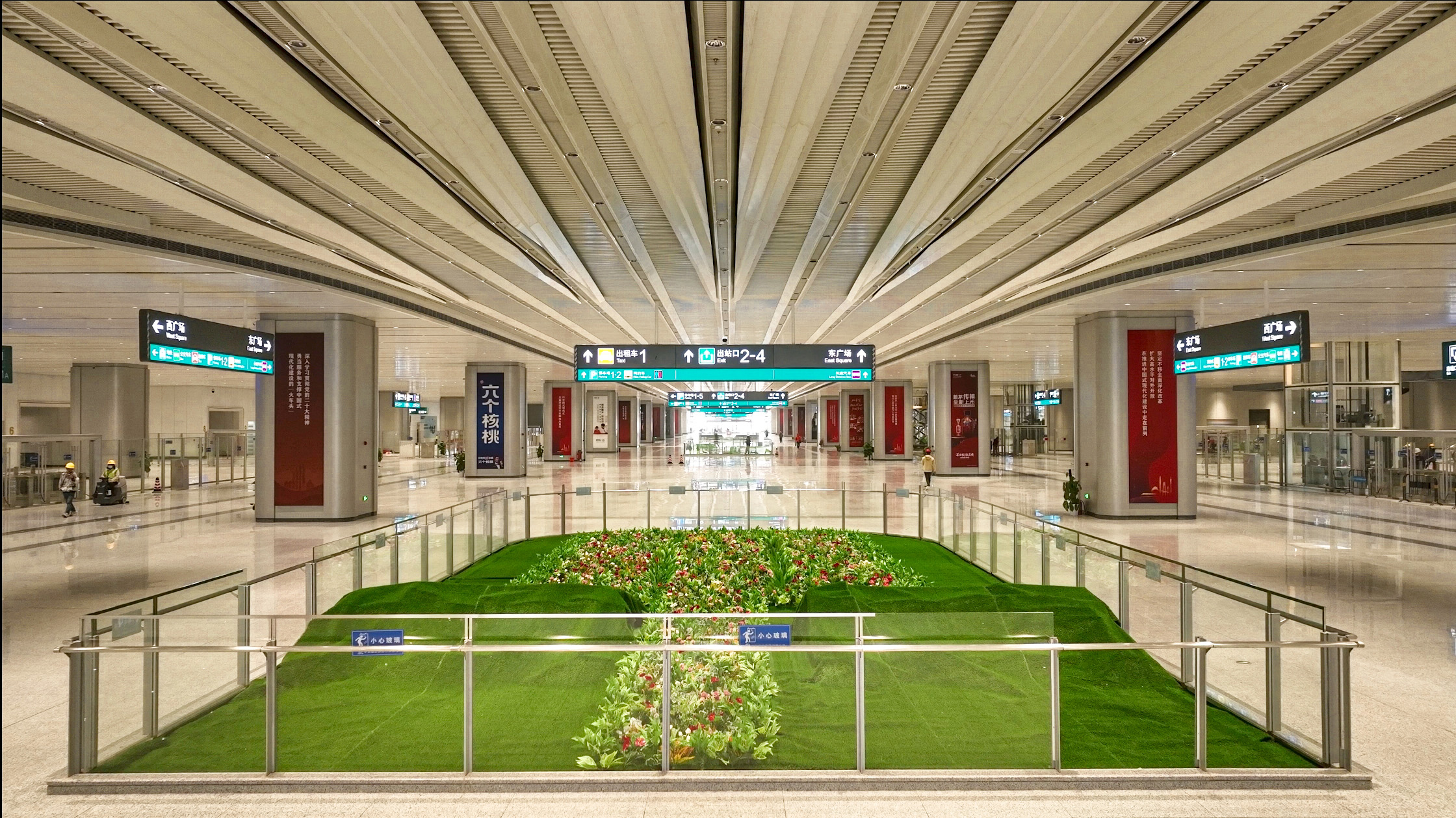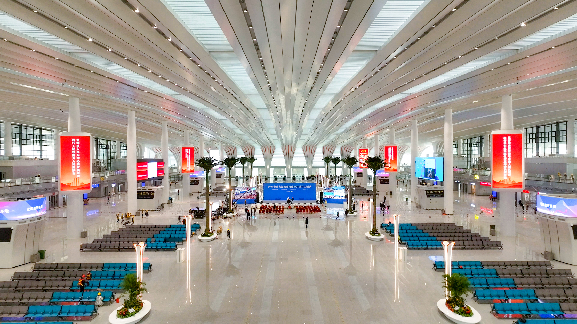 作為全國具有代表性的「站城融合」大型綜合交通樞紐,廣州白雲站整體為「方—圓—方」布局,城市配套設施環繞於站房四周。車站設高架候車層、站台層、出站層、地鐵換乘層、地鐵站台層等。旅客從周邊配套場站下車後,通過銜接平台最短步行約50米即可進站候車,實現平層對接、無縫換乘。