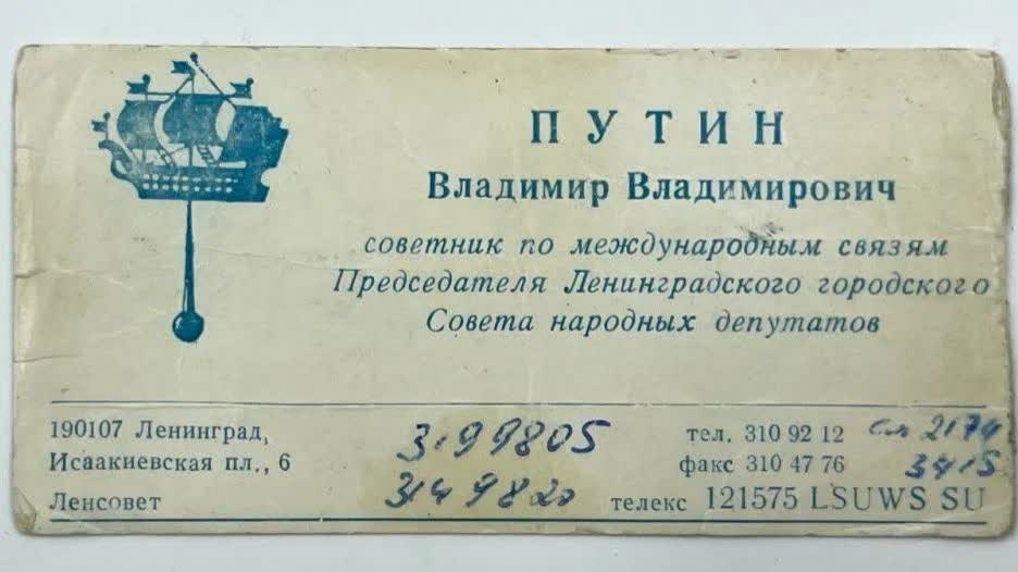 據環球時報報道,24日,俄羅斯總統普京的一張上世紀90年代的名片在拍賣會上被拍到200萬盧布(100盧布約合7.8元人民幣)。據俄新社25日報道,俄羅斯拍賣網站Bidspirit稱,這張名片是普京1990年至1991年擔任列寧格勒(今聖彼得堡)市蘇維埃主席阿納托利的對外聯絡部顧問時印製的,大小為4.5×9.5厘米。名片上的幾個電話號碼也是他親筆所寫。這張名片起拍價為1000盧布。交易開始僅5小時,價格便一路升至20萬盧布。最終,這張名片以200萬盧布的價格被一位神秘買家收入囊中,較起拍價飆升了2000倍。