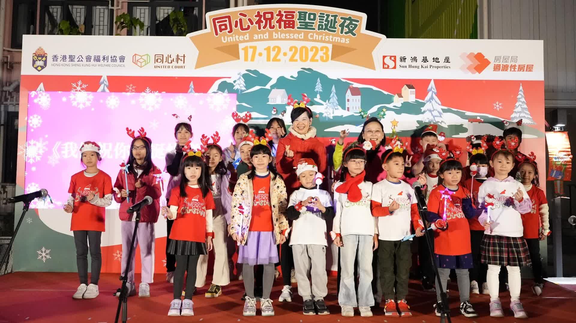 大公文匯全媒體報道,房屋局局長何永賢今日(26日)於社交專頁發文,指這幾天本港節日氣氛濃厚,透露自己早幾天應邀到訪元朗東頭同心村,與居民提早慶祝聖誕,她表示當日氣溫雖然已經轉冷,仍無阻居民一起到村內的大廣場觀看聖誕樹亮燈儀式。