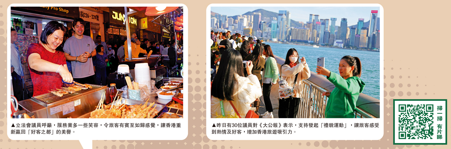 立法會議員李梓敬表示,本港服務質素確有下降。他贊成特區政府與業界發起「禮貌運動」,重塑香港好客之都形象,讓多些旅客來港。