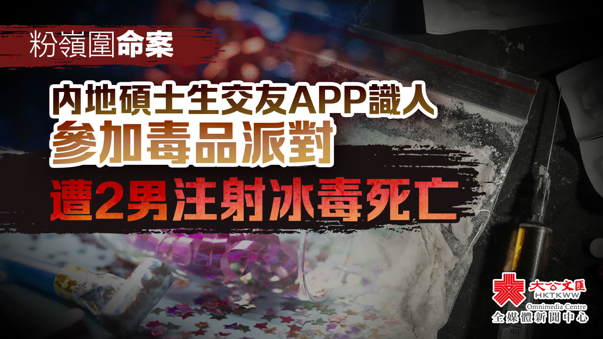 大公文匯全媒體報道,22歲內地來港碩士男生,透過交友程式認識5名人士,並於22日參加粉嶺圍一個毒品派對,期間被人注射冰毒,其後昏迷不治,遭派對友抬走棄屍街頭。