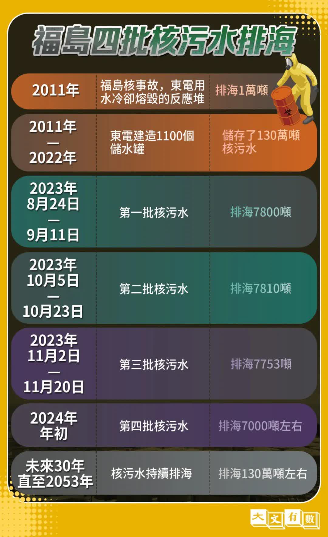從2023年8月24日到11月20日,共經歷了3次核污水排放。這3個月中,直接被排入太平洋的核污水累計超2.3萬噸。