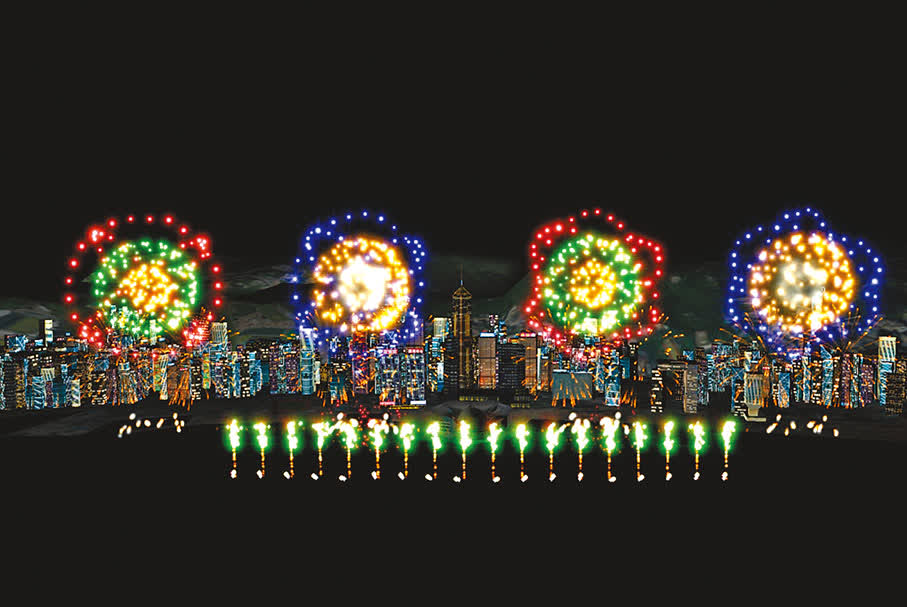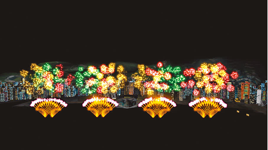 為了展現更立體的煙花效果,此次匯演特別使用了由5艘躉船和16艘浮船組成的前後排列發射陣型,從多個角度釋放煙火,高低錯落有致,充滿維港的高空與海面,為觀眾呈現一場壯觀、層次分明的視覺盛宴。