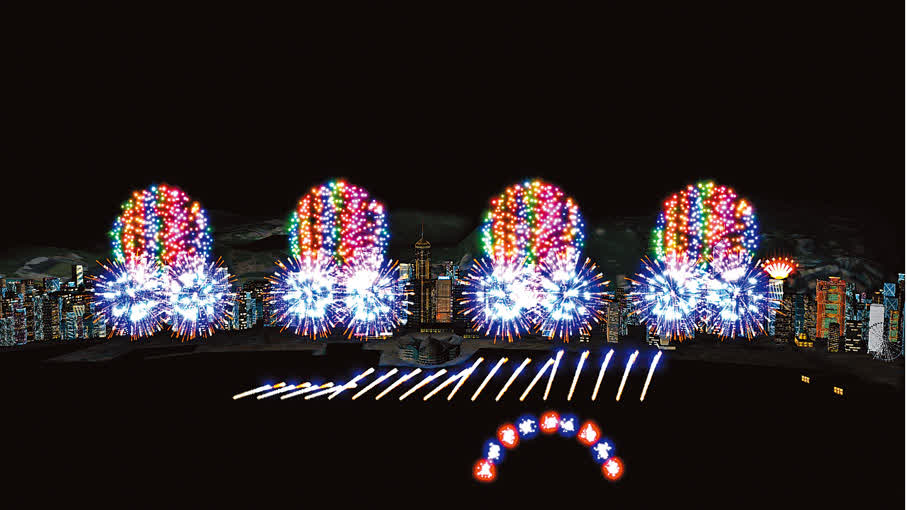 洋溢生命力的盛夏,由七彩煙花組成多個「沙灘球」圖案,象徵大海、活力、熱情。