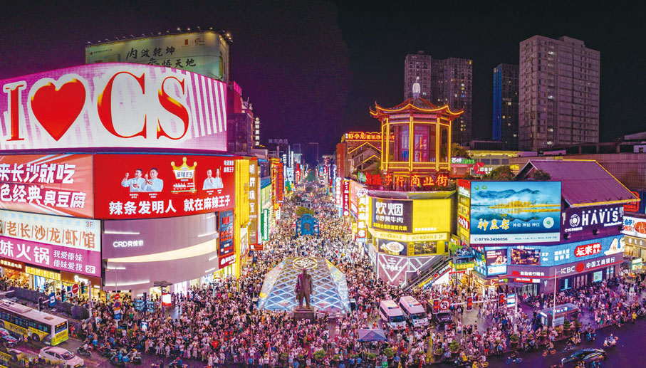 2022年9月,湖南出台《關於加快建設世界旅遊目的地的意見》,提出打造以張家界等為代表的奇秀山水名片、以韶山等為代表的經典紅色名片、以長沙等為代表的城市文化和都市休閒名片、以南嶽衡山等為代表的歷史文化名片、以城頭山古文化遺址等為代表的農耕文化名片的「五張名片」,這「五張名片」呈現湖南文旅的四大特點,「古色」厚重,「紅色」熾熱,「綠色」盎然,「夜色」亮麗。