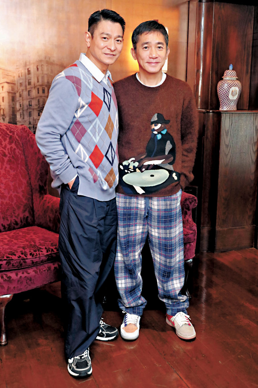 (香港文匯報記者 阿祖/文 黃艾力/圖)影帝劉德華(華仔)與梁朝偉(偉仔)繼《鹿鼎記》到《無間道》後,相隔20年於電影《金手指》再度合作,萬眾期待,兩人相識40年,雖然平日不多見面,但在片場埋位時已默契滿滿,每場對手戲都不用試戲,互相帶動對方演得更收放自如。