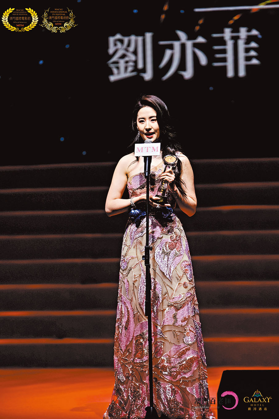 壓軸行紅地毯的劉亦菲身穿粉紅色晚裝示人,她是13年前電影最佳女主角,亦是去年電視最佳女主角,今年冧莊再獲電視女主角獎。她對於有提名已感到榮譽,多謝大家對她的厚愛。司儀問她明年有何計劃時,劉亦菲笑稱今年尚未完結。現場見有不少劉亦菲的粉絲,司儀提議她走到粉絲群前合照留念,她只站在原地答謝粉絲,之後就走進會場。
