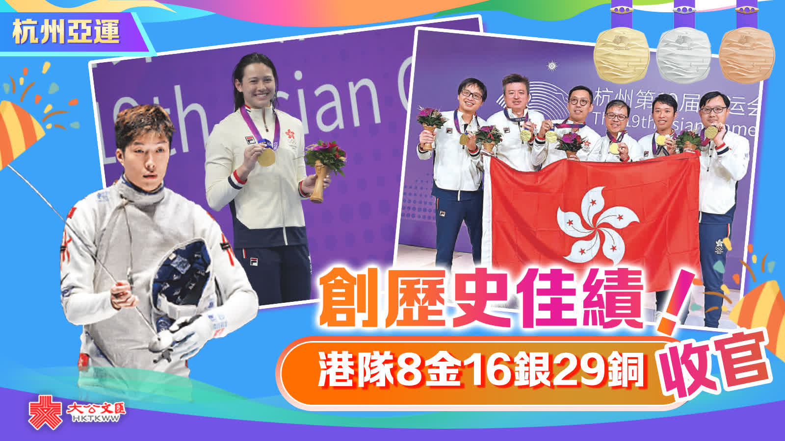 9月,杭州亞運。港隊在亞運會斬獲共53面獎牌,刷新紀錄。港隊在賽艇、劍擊、游泳、欖球、高爾夫球、單車及橋牌項目均奪得金牌。香港男子足球隊更擊敗伊朗隊,在亞運史上首次躋身四強,吸引大批市民看直播支持,帶動了全港市民的體育激情。