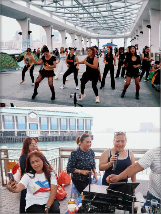 簡單的生活也可以很快樂。在港菲傭聚會除了唱歌跳舞、打牌聊天,還有人用手機現場開直播當起了主播,也會扮演選美……娛樂活動豐富多彩。