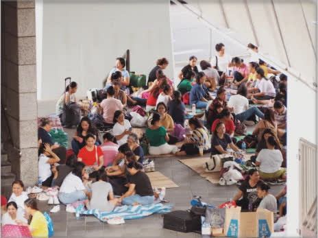 每個周日是菲傭(香港的菲傭人數最多,通常也會把香港外傭直接稱為「菲傭」)的法定休息日(=party time)。經過了一周6天在僱主家裏的辛勤工作,周日的休閒自由時間便顯得彌足珍貴。