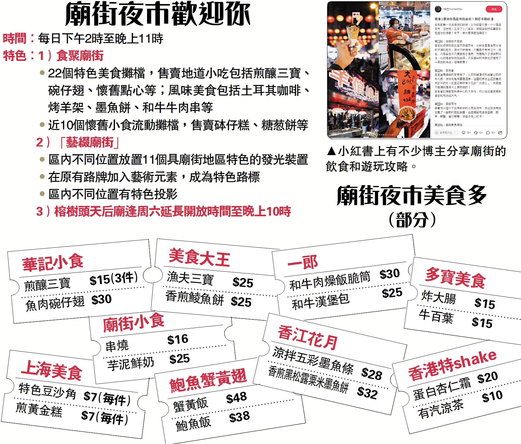 (大公報 記者 賴振雄)極具地道港味的油麻地「廟街夜市」,營運兩星期以來大獲好評,市民與訪港遊客讚不絕口,攤檔丁財兩旺,亦帶動附近商戶生意增長。