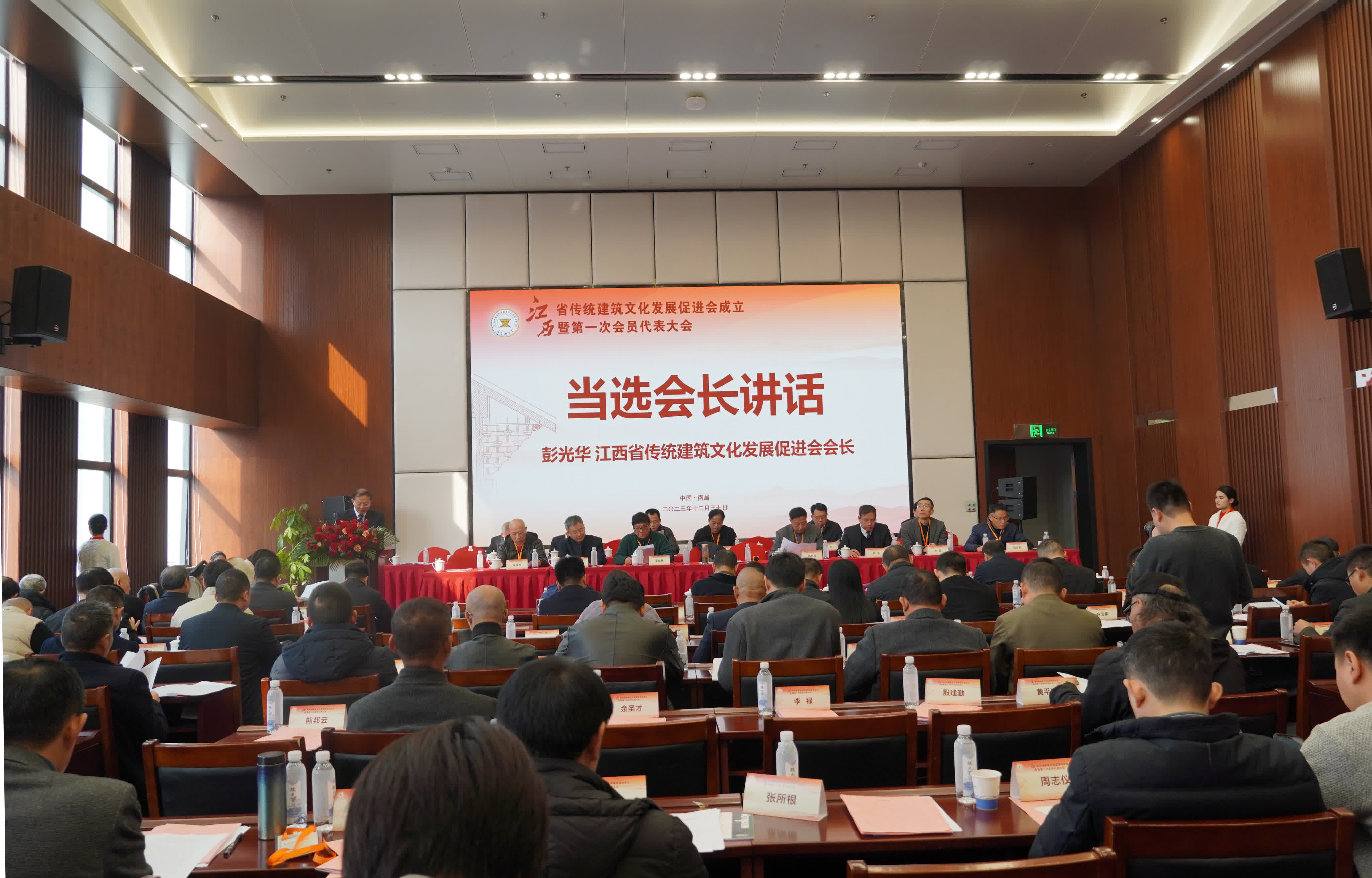 12月30日,江西省傳統建築文化發展促進會(以下簡稱「促進會」)成立暨第一次會員代表大會在南昌召開。江西省民政廳廳長李明生、江西省文化和旅遊廳副廳長丁新權、江西省住房和城鄉建設廳副廳長王曉明等出席大會並致辭。彭光華當選江西省傳統建築文化發展促進會會長。