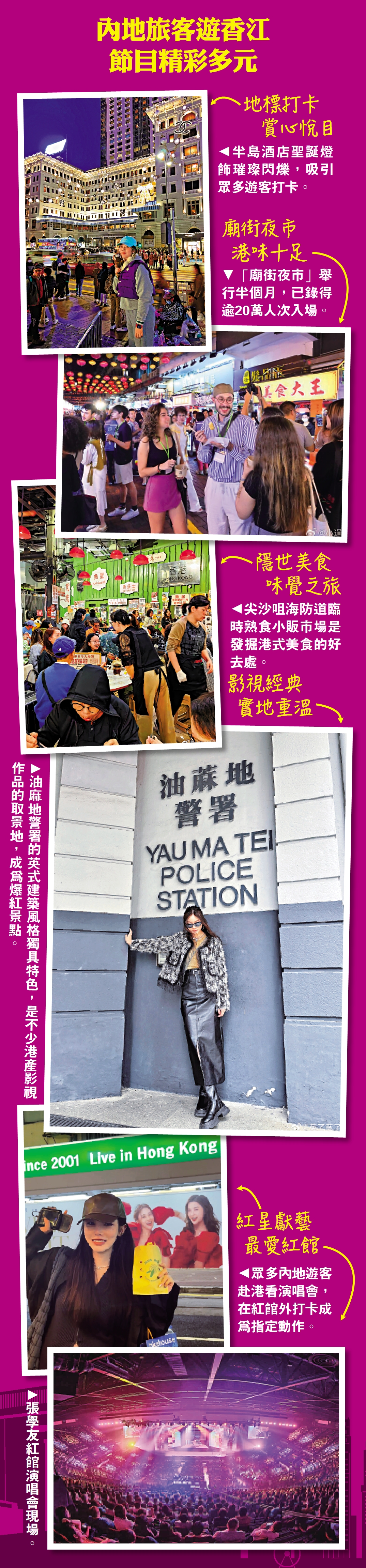 「歌神」張學友近期正於紅館舉辦演唱會,90後北京市民張小姐打算在元旦期間赴香港與偶像學友大哥一起倒數迎接新年。她說:「我從高中時期就喜歡聽學友唱歌。這次也是費了半天勁才搶到的票。」張小姐表示「打算看完演唱會後在維港附近轉轉,再去夜市來一碗我最愛的乾炒牛河。」