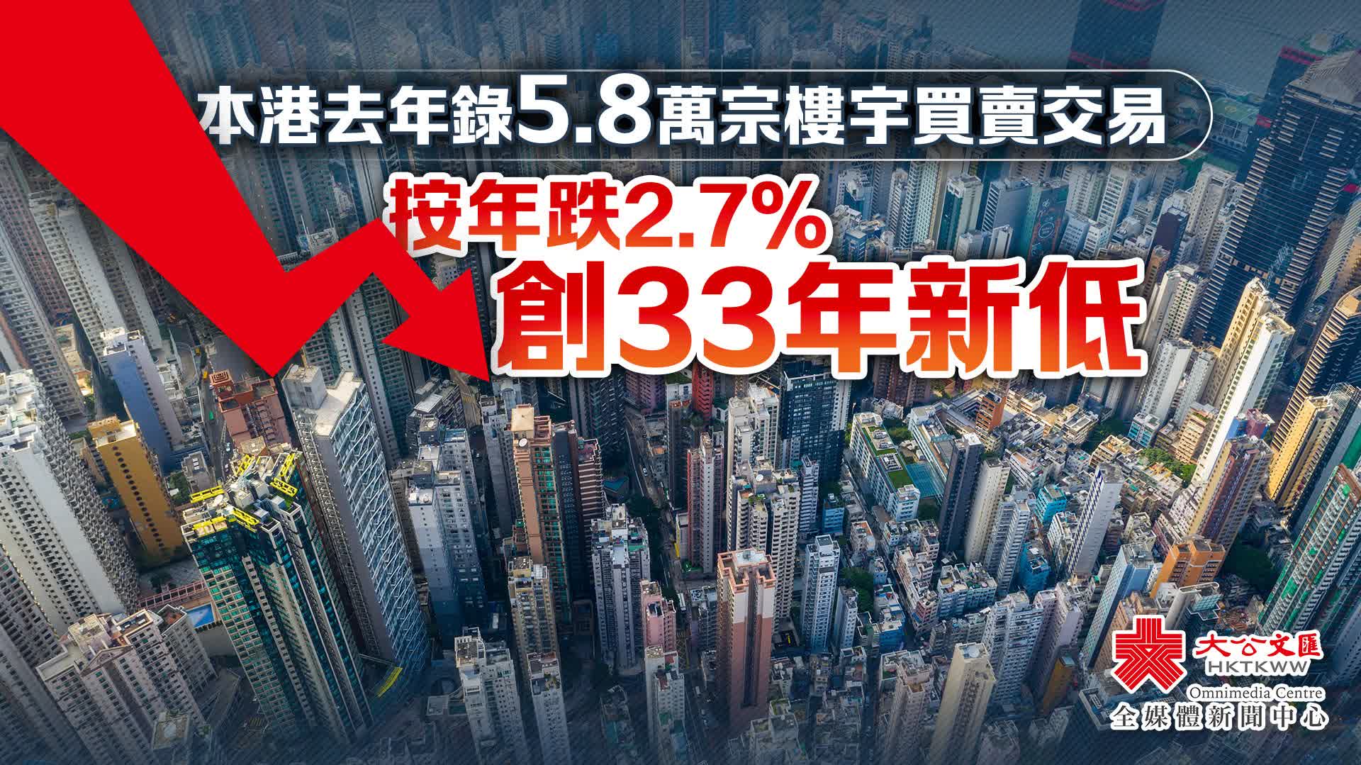至於去年全年,美聯首席分析師劉嘉輝表示,截至去年12月28日整體註冊量錄57781宗,一手私宅及二手佔46712宗,料全年錄約58000宗,按年跌約2.7%,創1991年有紀錄以來的33年新低。