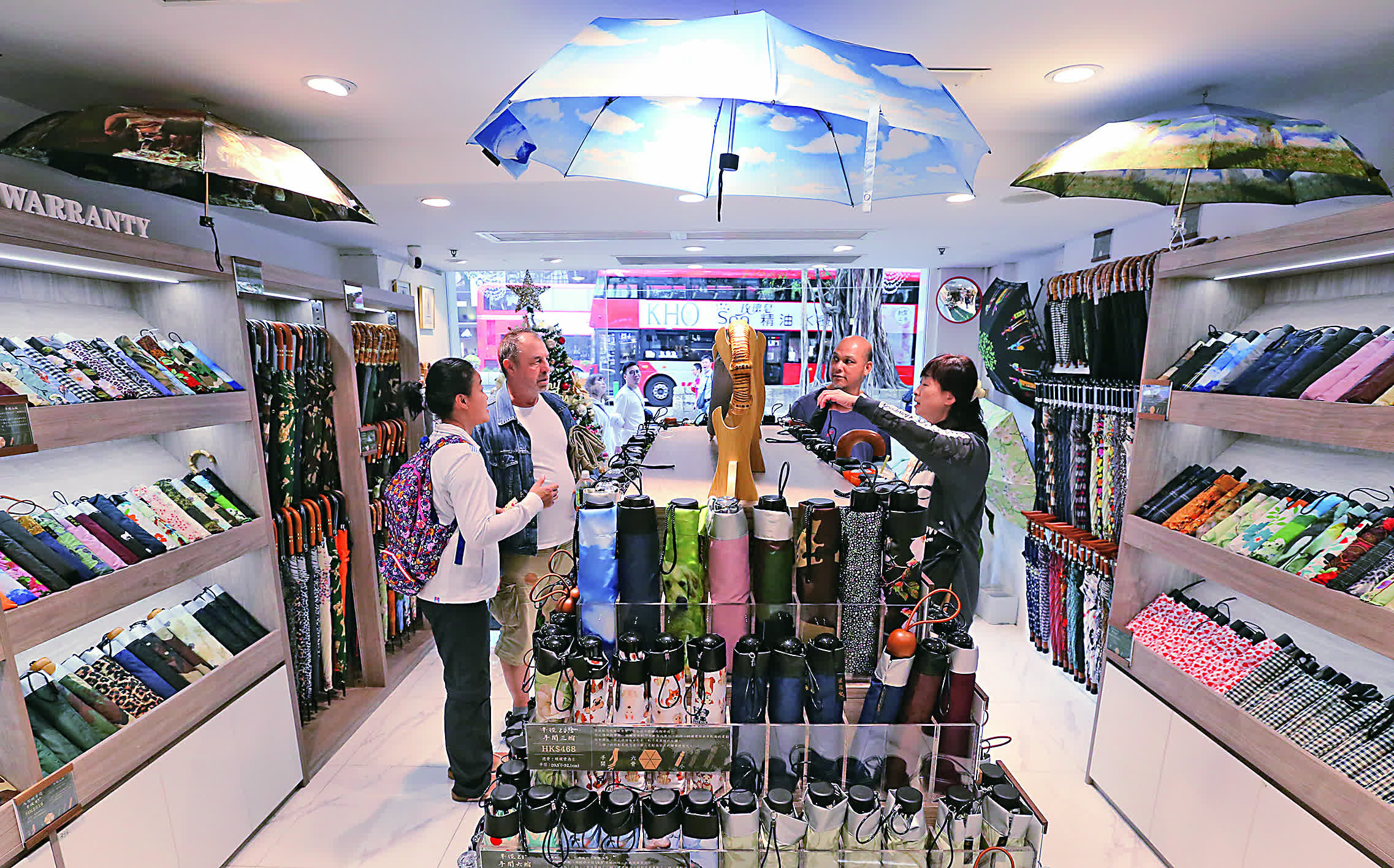 記者在「禮貌徑」訪問百年品牌「梁蘇記」雨傘店負責人梁小姐,她表示去年3月起將店舖由深水埗搬遷至栢麗購物大道,正正是恢復通關之時,一直受惠遊客「報復式」消費,生意額增加了三、四成,而近期政府推出多個促進旅遊的盛事亦吸引大量遊客,消費大增。梁小姐支持政府重新推行「禮貌運動」,可紓緩情緒,提升香港作為優秀旅遊國際都市的形象,吸引更多遊客。